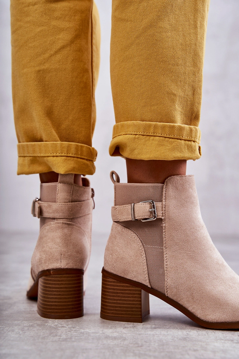 Zamszowe Botki Na Słupku Beżowe Vannes