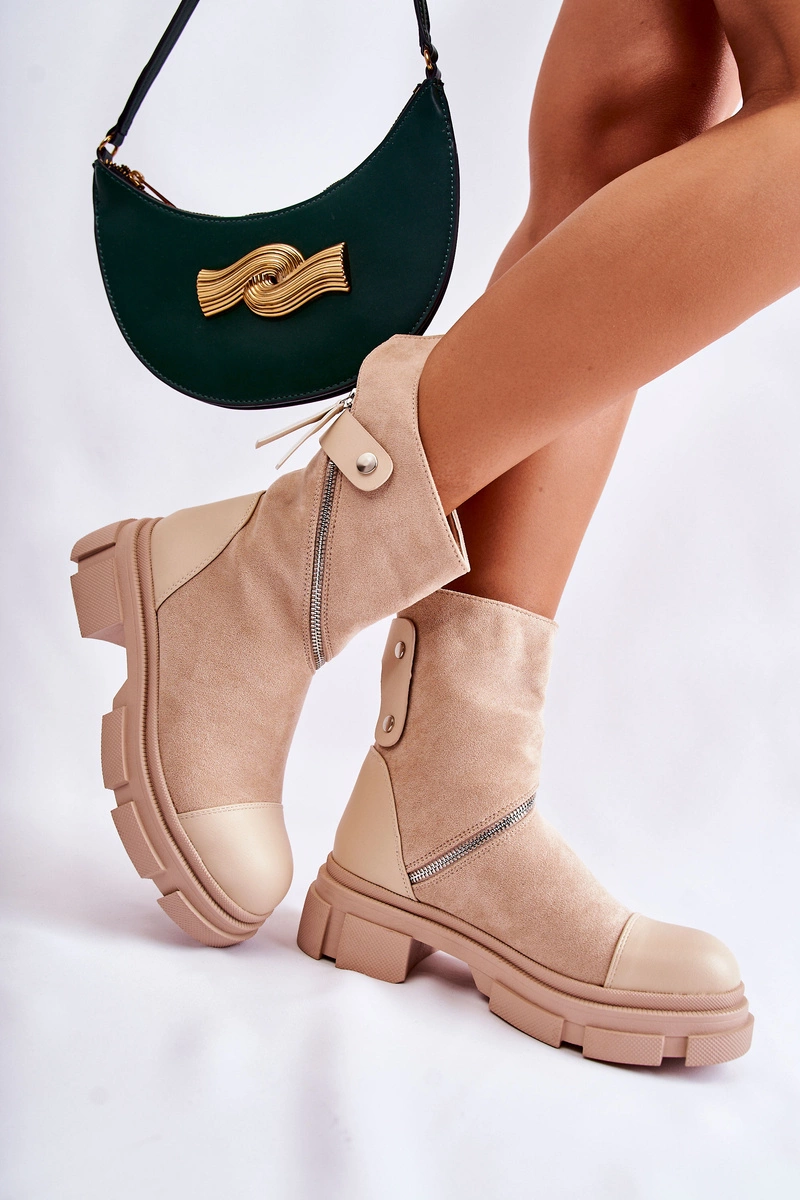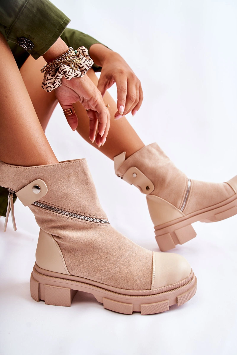 Modne Damskie Zamszowe Botki Na Suwak Beżowe Kandell