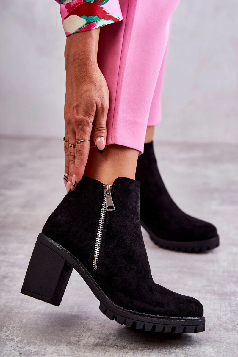 Zamszowe Botki Na Obcasie Z Suwakiem Czarne Sevione