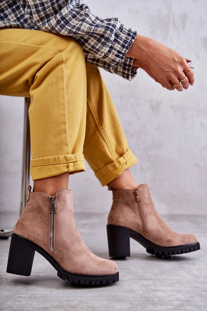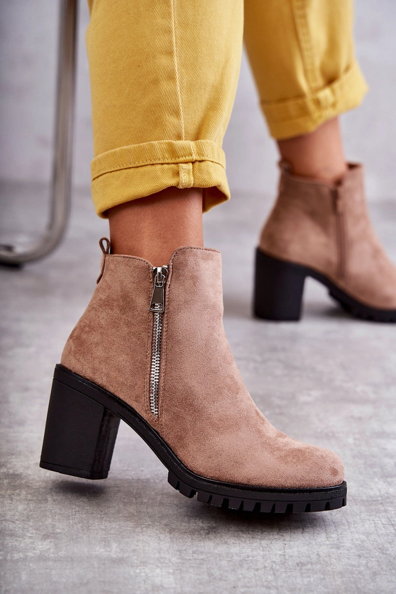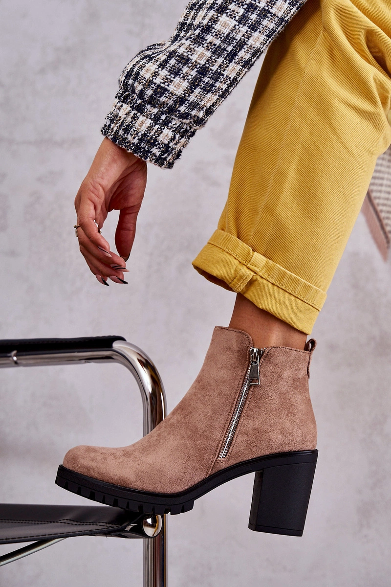 Zamszowe Botki Na Obcasie Z Suwakiem Beżowe Sevione