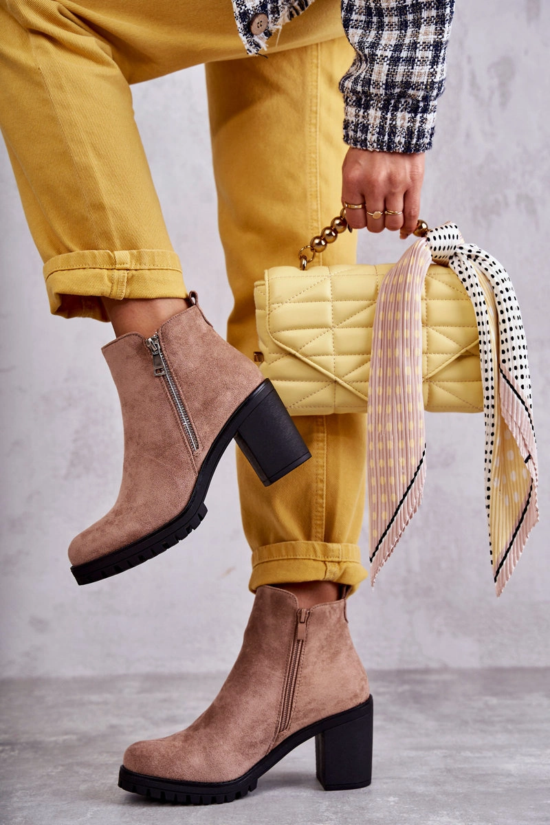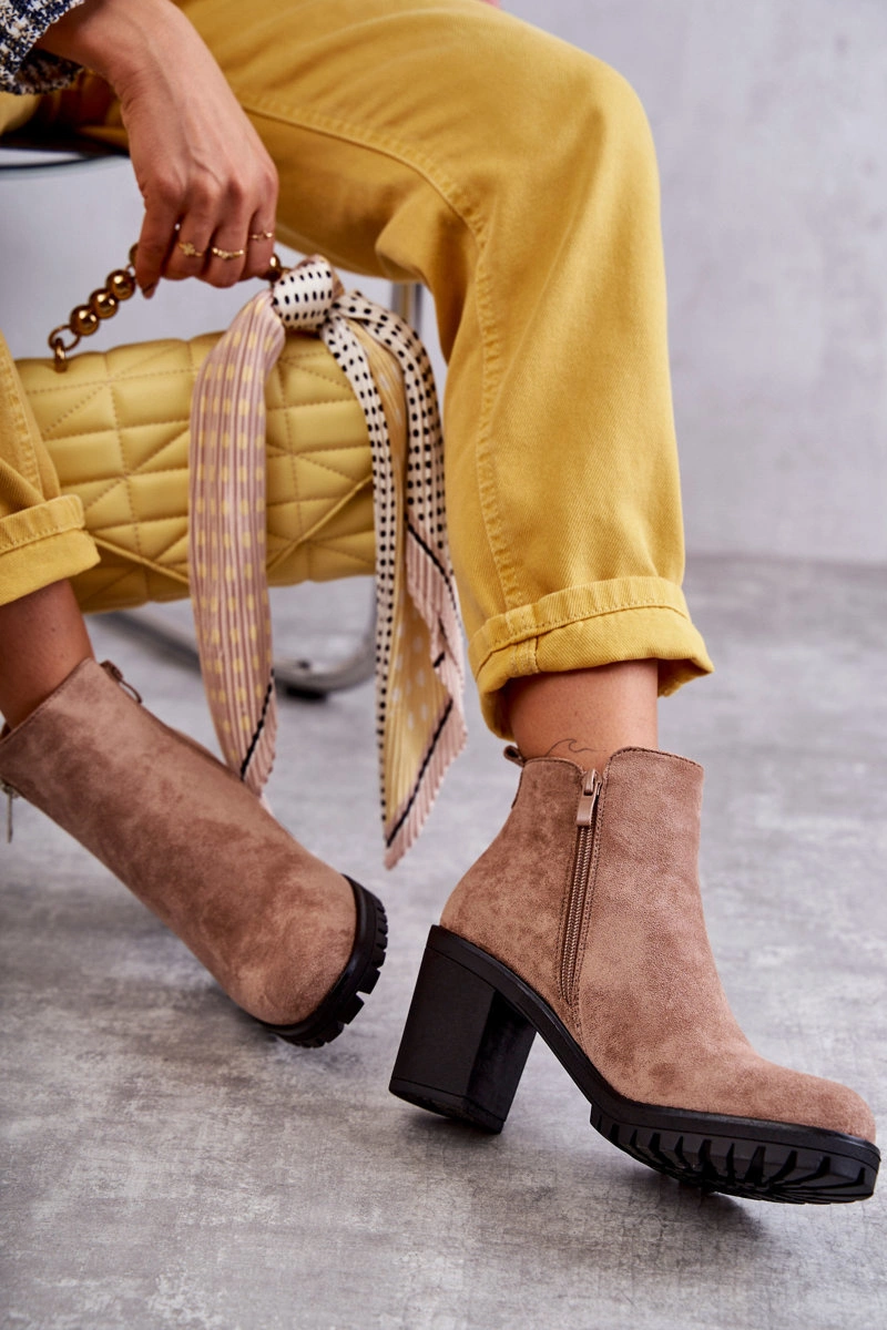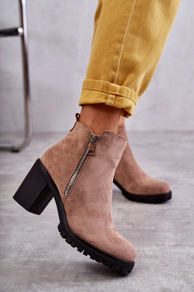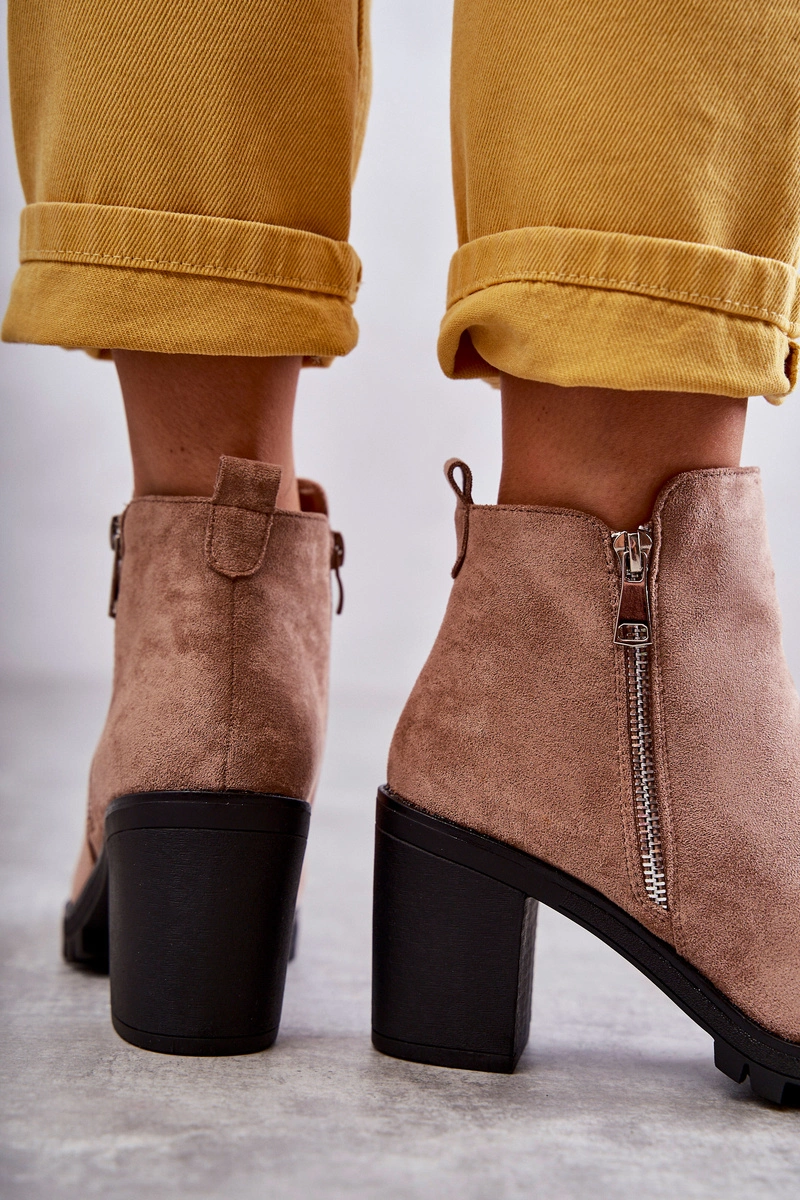 Zamszowe Botki Na Obcasie Z Suwakiem Beżowe Sevione