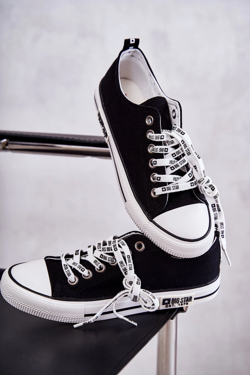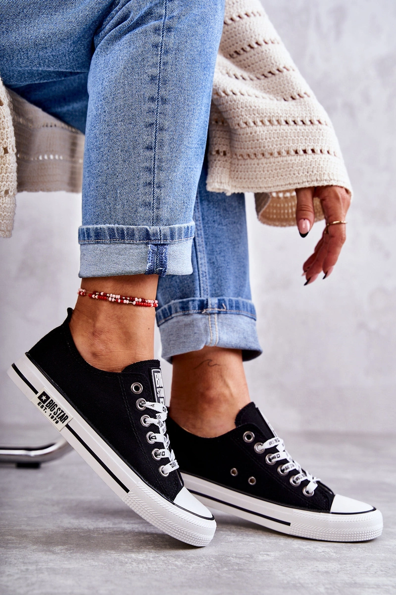 Ponadczasowe trampki damskie marki Big Star zostały wykonane z materiału tekstylnego. Posiadają gumowy, wzmacniany nosek. Model charakteryzuje się logowanymi sznurowadłami. Podeszwa wraz z platformą wykonane z gumowego tworzywa, dzięki którym model ten jest antypoślizgowy. Wkładka materiałowa. Klasyczne trampki z pewnością świetnie będą prezentować się w wielu stylizacjach. Przy wyborze rozmiaru prosimy sugerować się tabelą rozmiarów.