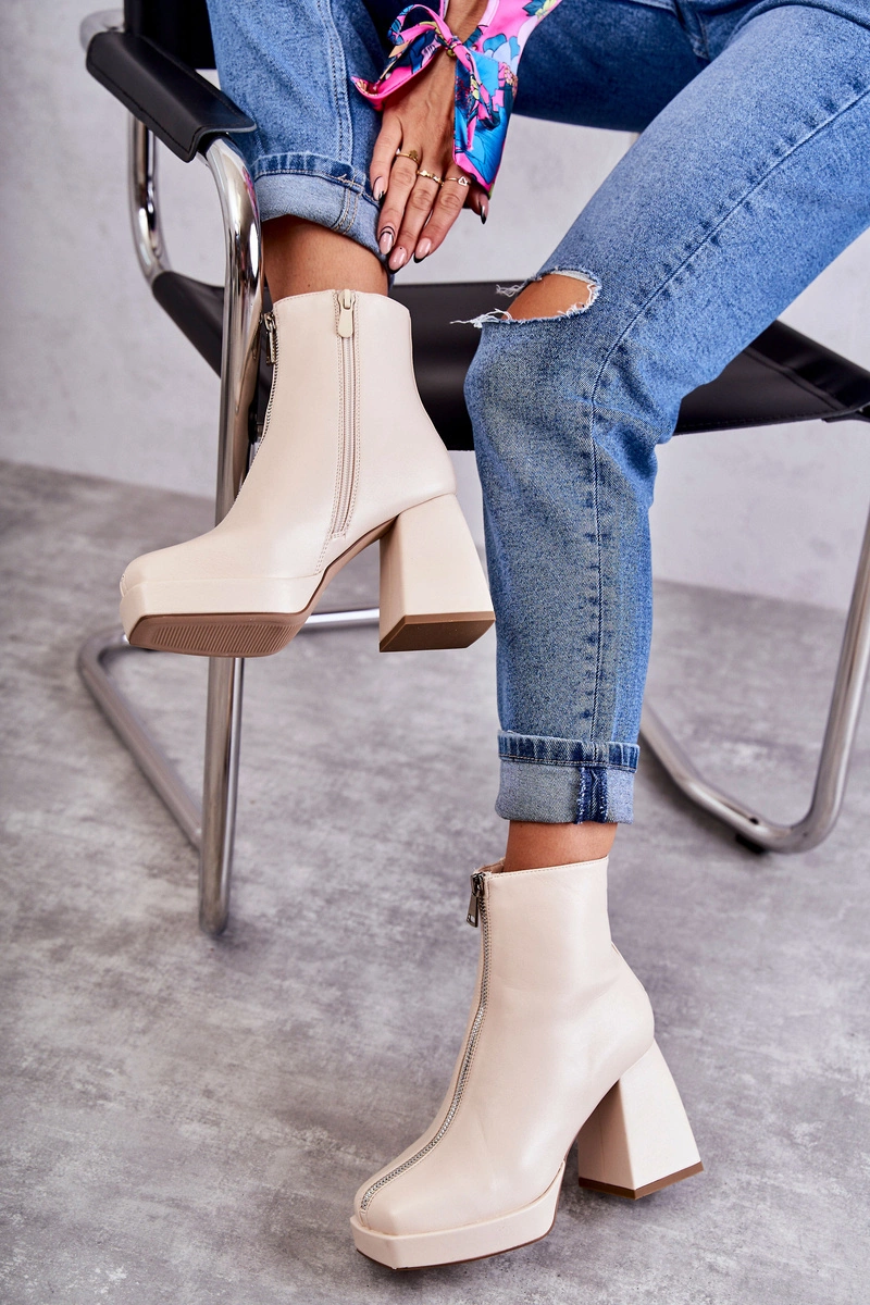 Damskie Botki Na Masywnym Obcasie Z Suwakiem Beżowe Carrera