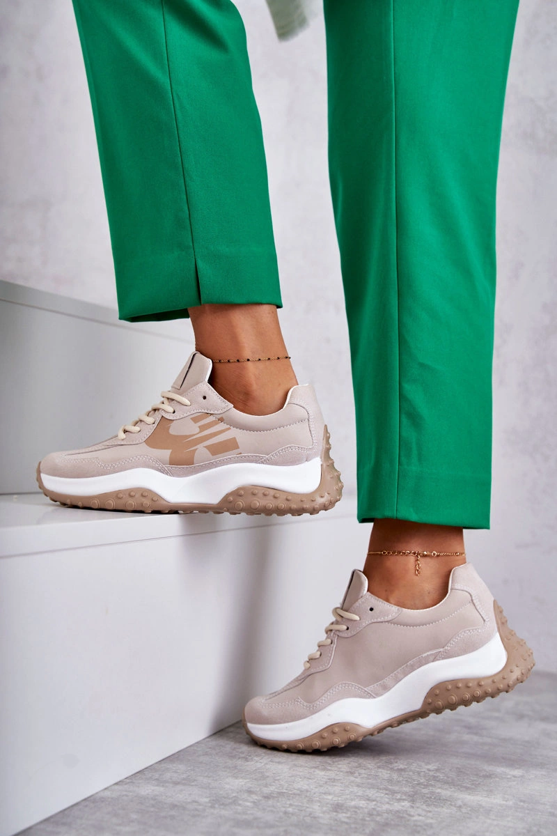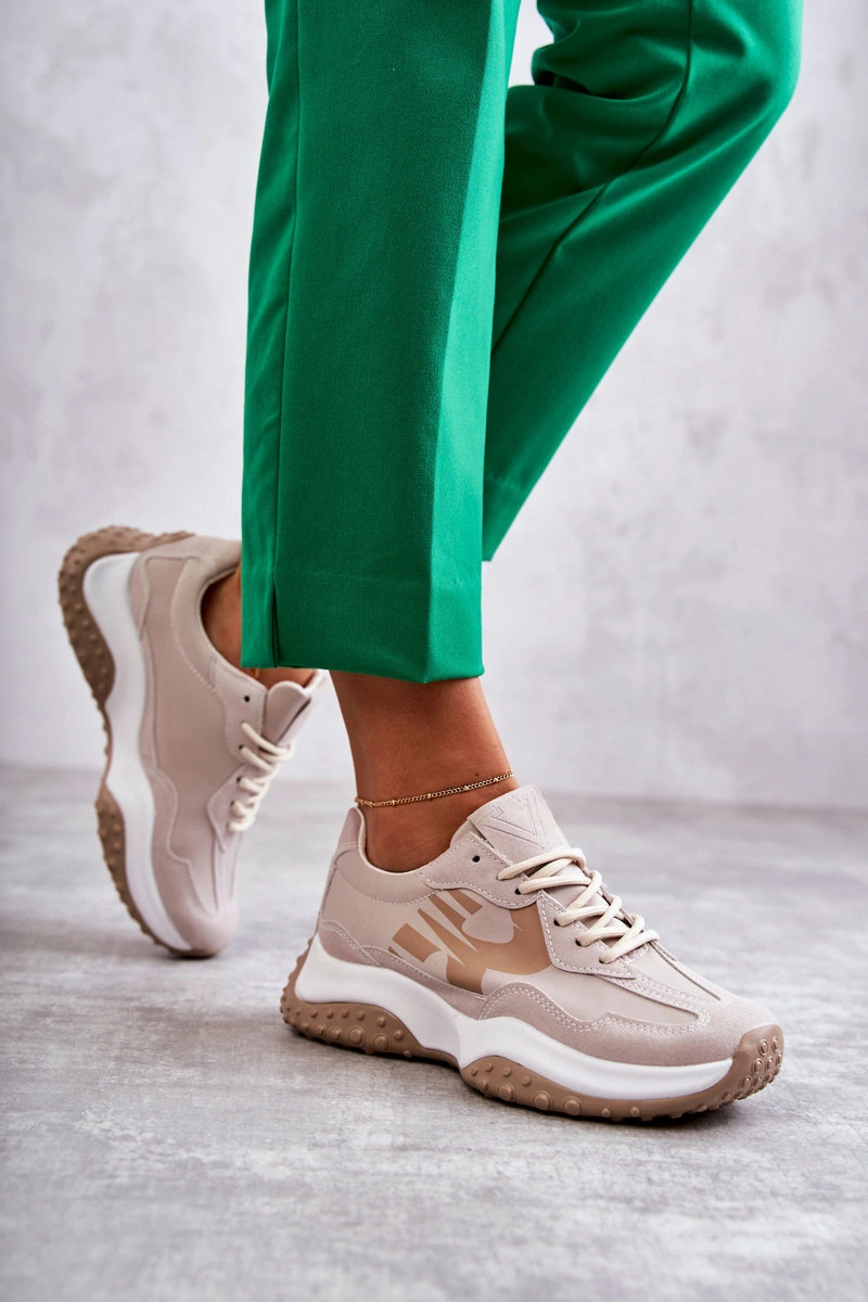 Damskie Buty Sportowe Wiązane Beżowe Tolea