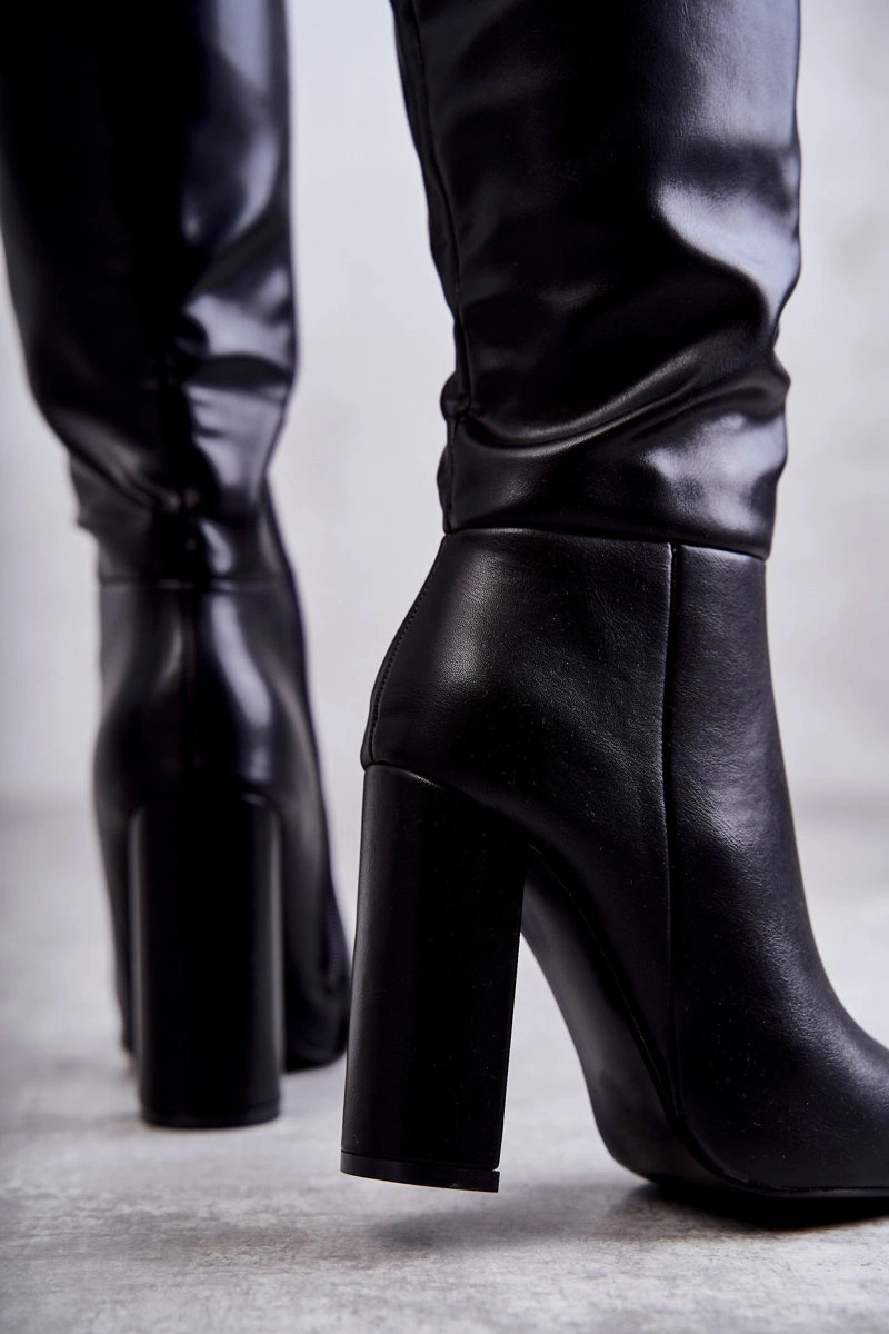 Klasyczne Skórzane Kozaki Na Obcasie Czarne Tressa
