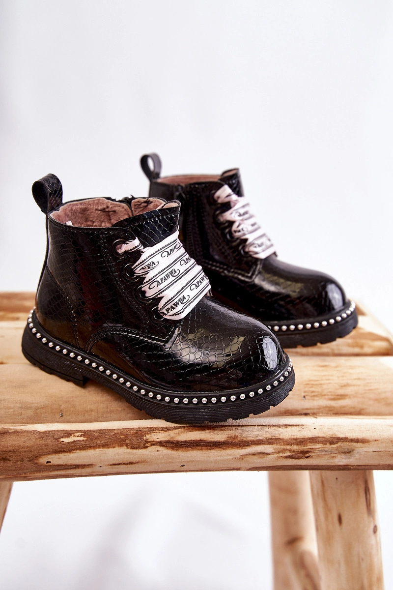 Dziecięce Ocieplane Skórzane Botki Czarne Dottie