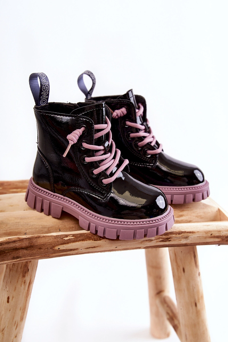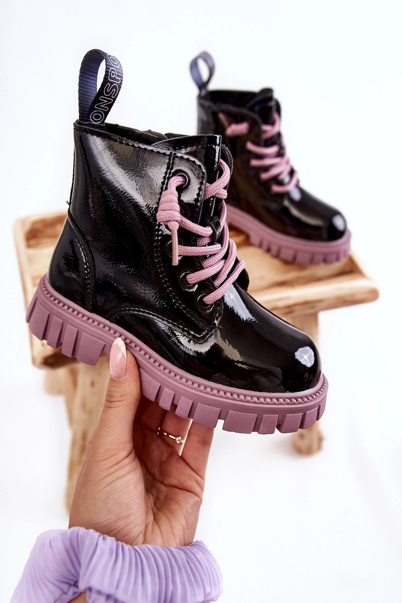 Lakierowane Ocieplane Botki Czarno-Fioletowe Heidi