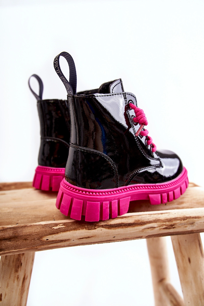 Lakierowane Ocieplane Botki Czarno-Różowe Heidi