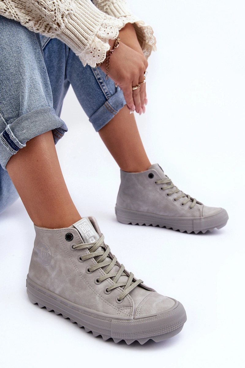 Trampki Damskie Big Star Wysokie Ocieplane Szare GG274070