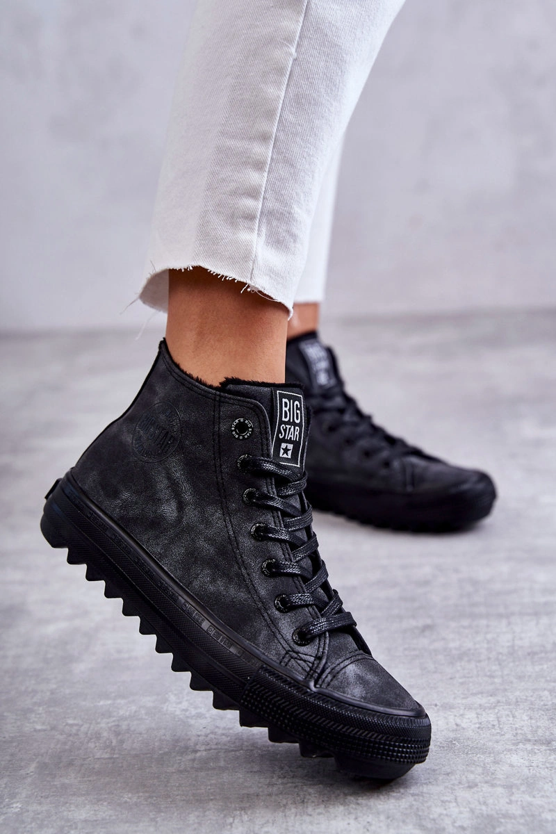 Trampki Damskie Big Star Wysokie Ocieplane Czarne GG274069