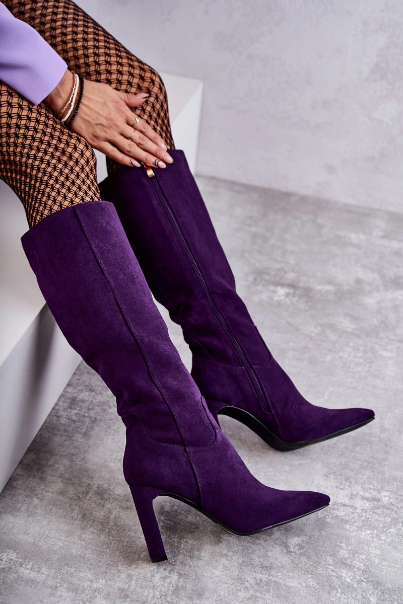 Kozaki Damskie Na Słupku Do Kolana Fioletowe Truly Love