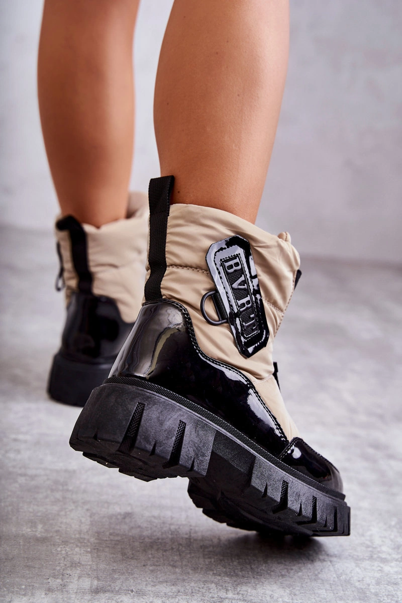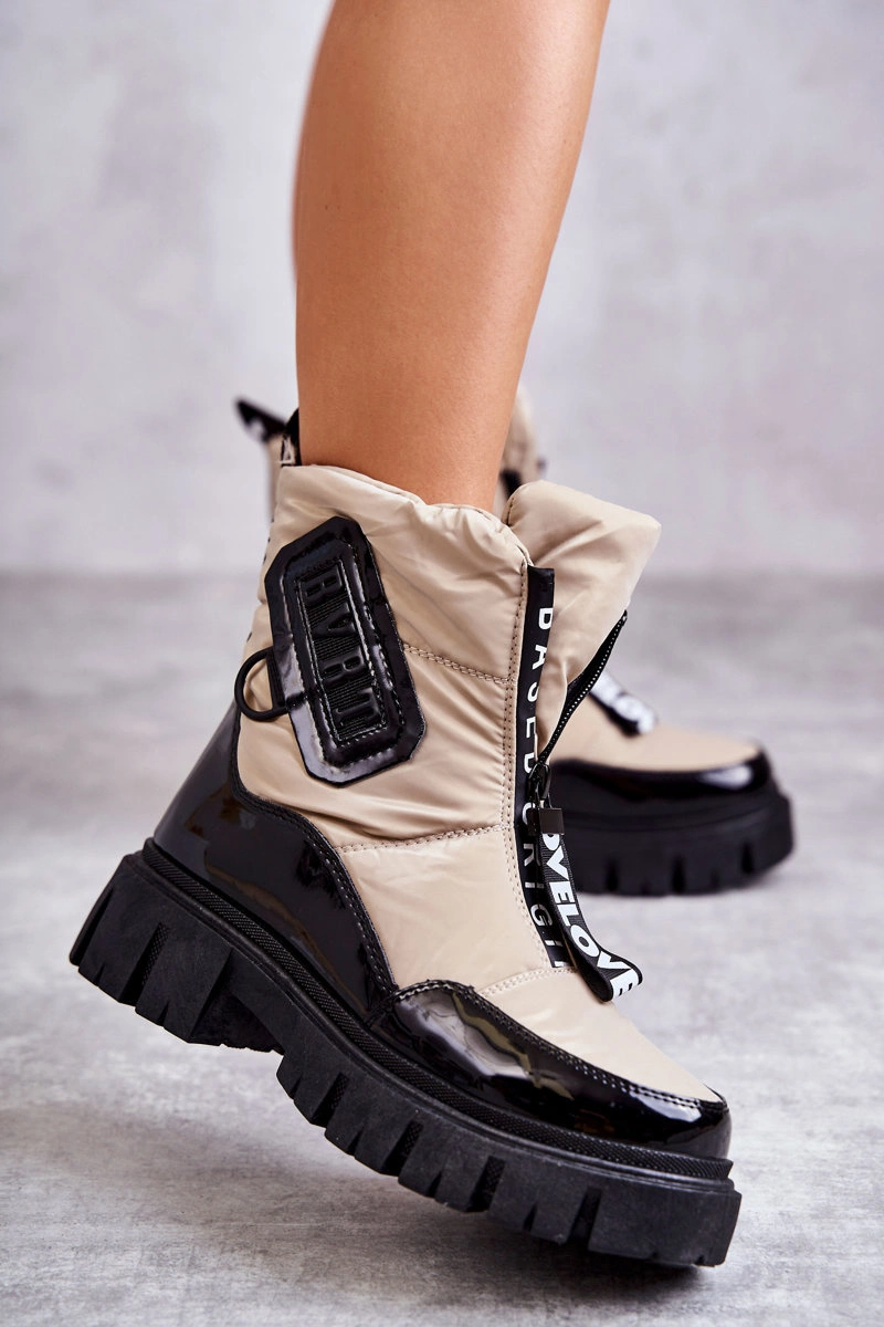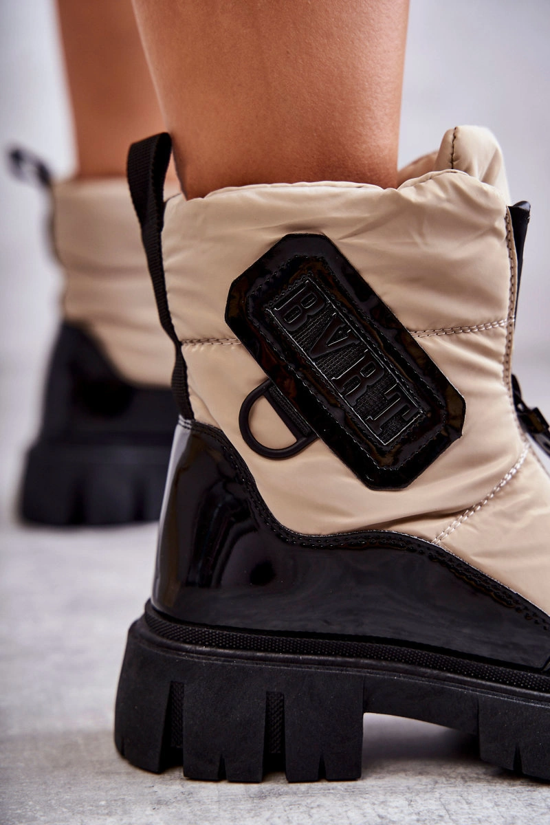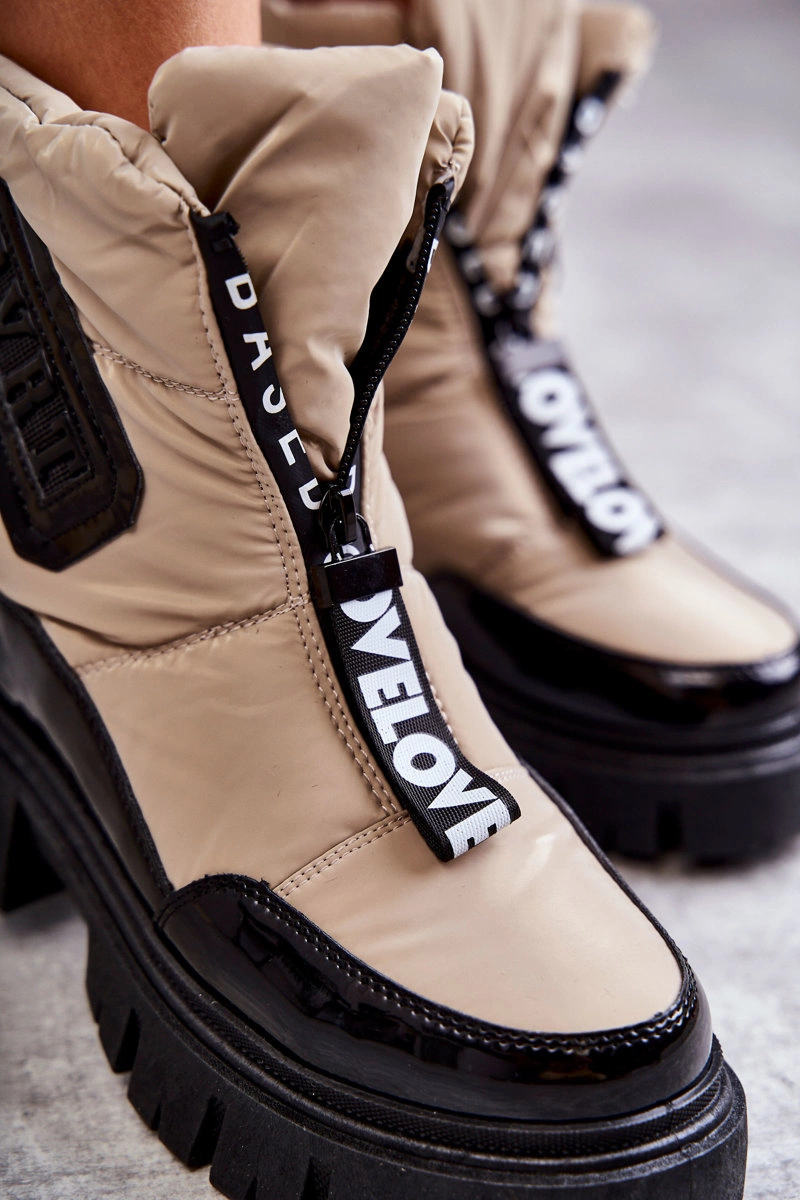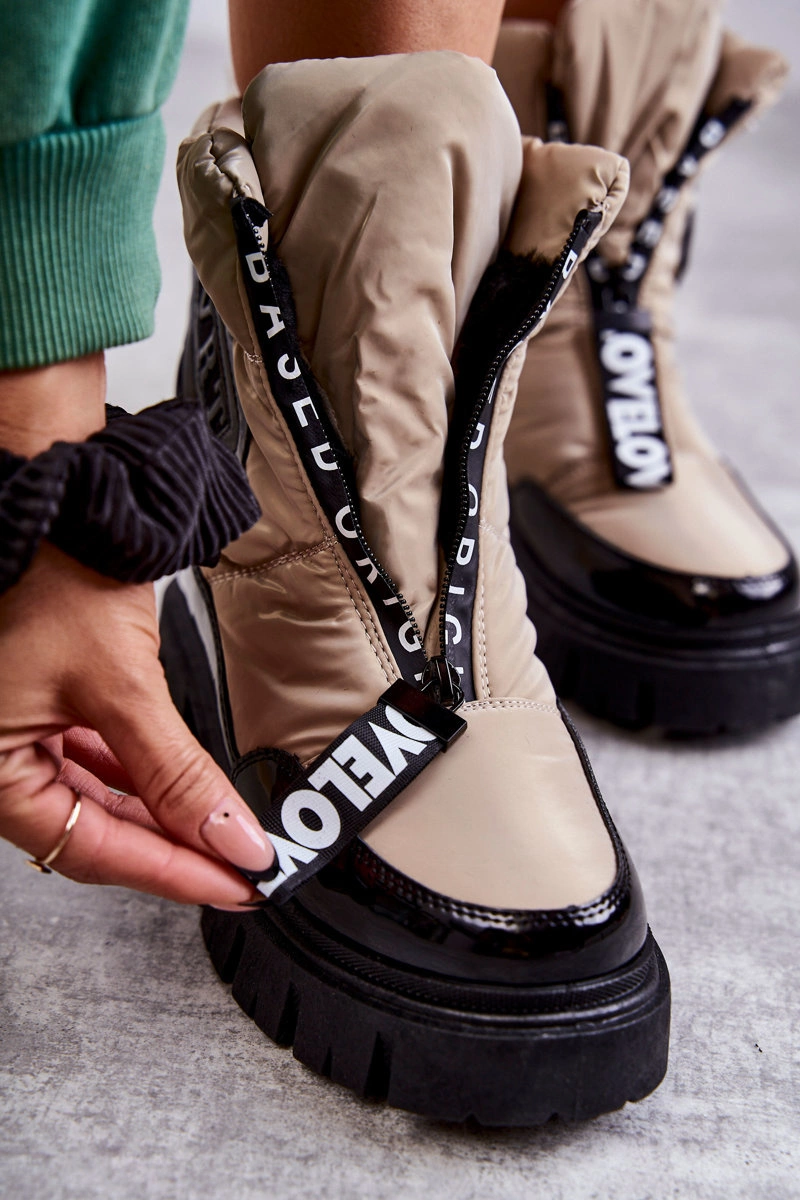 Damskie Ocieplane Śniegowce Na Suwak Beżowo-Czarne Marit