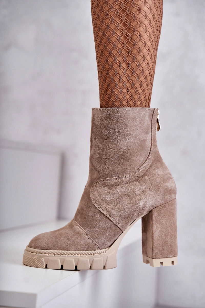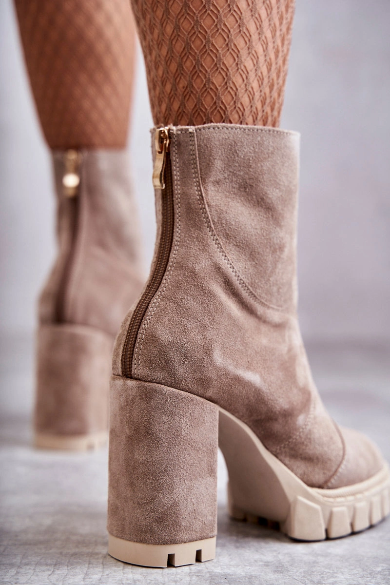 Zamszowe Botki Na Obcasie Beżowe Elia