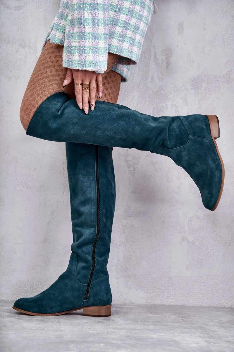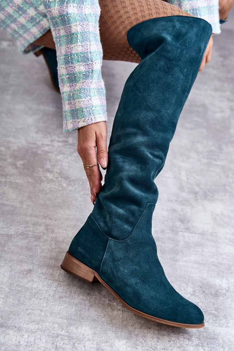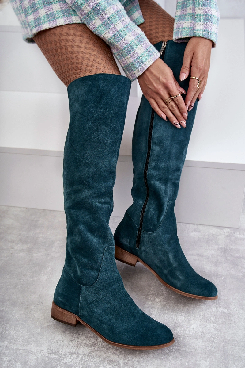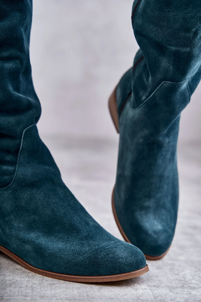 Damskie Kozaki Na Płaskim Obcasie Zielone Isolde