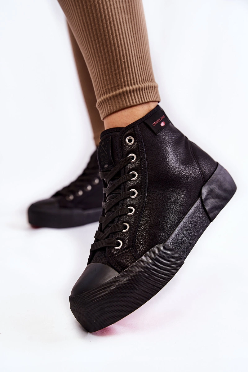 Damskie Wysokie Trampki Cross Jeans KK2R4055C Czarne