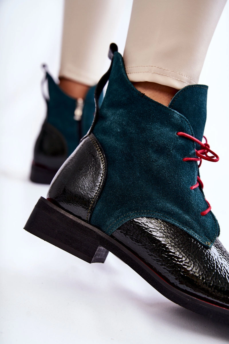 Skórzane Botki Zielono-Czarne Cheyenne