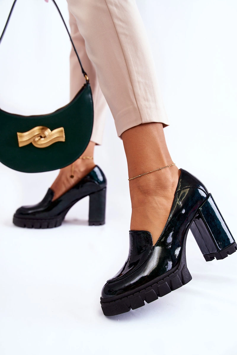 Modne Lakierowane Czółenka Na Masywnej Platformie Zielone Margott