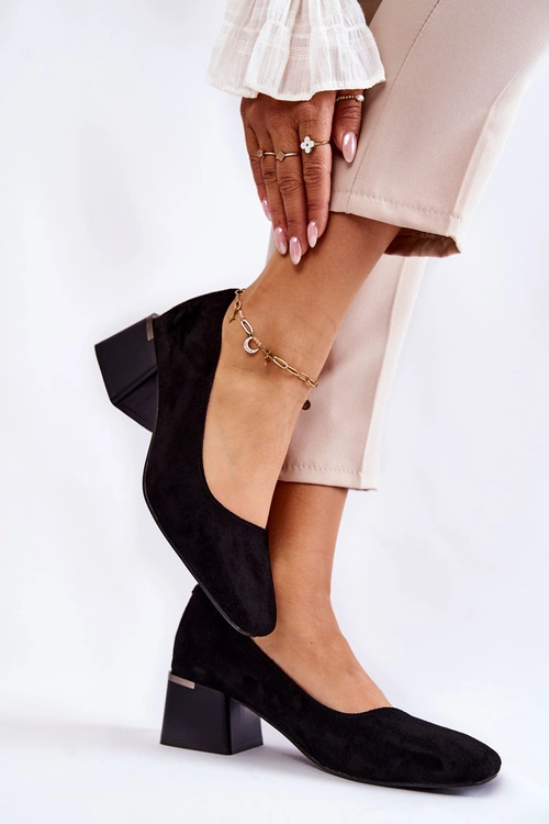 Klasyczne czółenka zostały wykonane z wysokiej jakości eko skórzanych materiałów. Posiadają usztywniany zapiętek oraz kwadratowy nosek. Świetny model do wielu stylizacji! Czółenka te posiadają miękką wkładkę wykonaną z naturalnej skóry, która zapewni wygodę podczas użytkowania. Zostały osadzone na obcasie w postaci klocka, co gwarantuje stabilizację. Przy wyborze rozmiaru prosimy sugerować się tabelą rozmiarów.