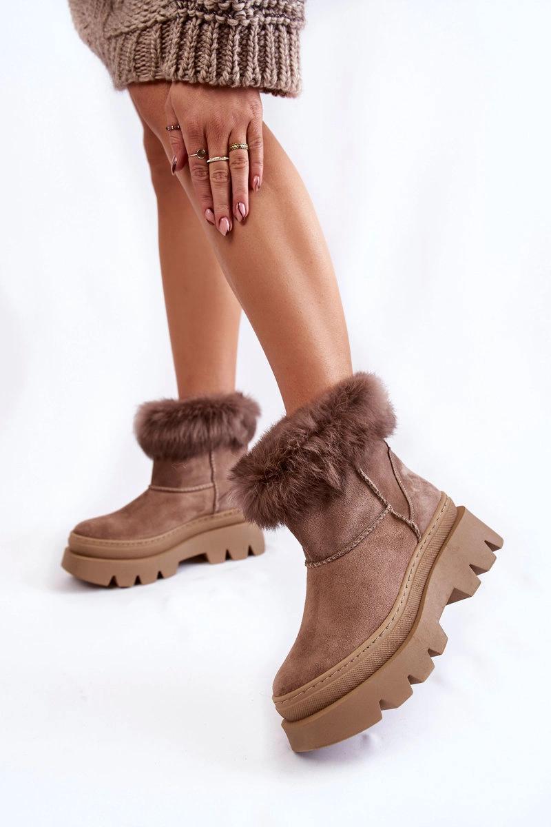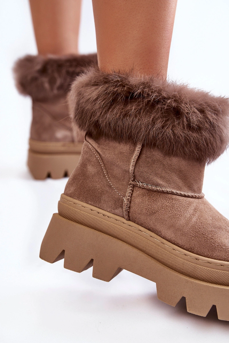 Śniegowce zostały osadzone na masywnym obcasie. Posiadają podeszwę z bieżnikiem. Śniegowce wykonane zostały z wysokiej jakości naturalnych skór. Wewnątrz ocieplone wełną. Model wsuwany z futerkiem na górze cholewki. Dodatkowo zapiętek jest usztywniany. Świetny model na mroźne dni! Koniecznie powinnaś je mieć! Przy wyborze rozmiaru prosimy sugerować się tabelą rozmiarów.