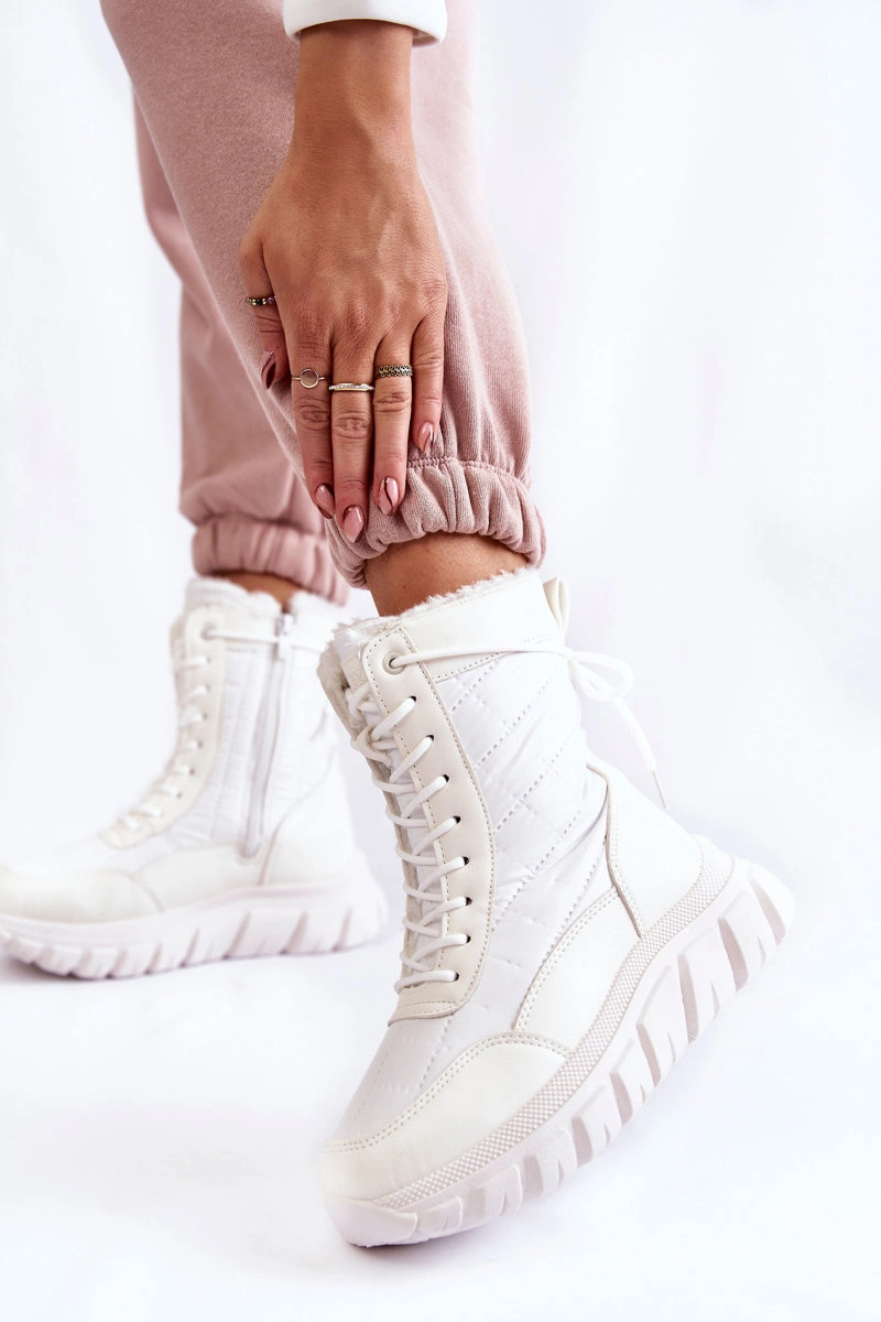 Damskie Sznurowane Botki Śniegowce Na Platformie Biało-Beżowe Anubi