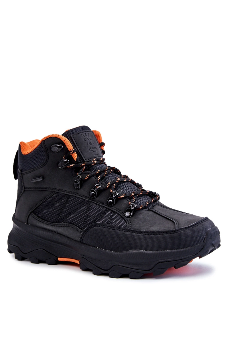 Męskie buty trekkingowe świetnie sprawdzą się w chłodne dni. Wykonane z połączenia eko skóry oraz materiału tekstylnego. Osadzone na masywnej platformie z antypoślizgową podeszwą. Botki te posiadają solidne sznurowanie. Wewnątrz zostały ocieplone miłym w dotyku futerkiem. Dodatkowo zapiętek jest usztywniany. Przy wyborze rozmiaru prosimy kierować tabelą rozmiarów.