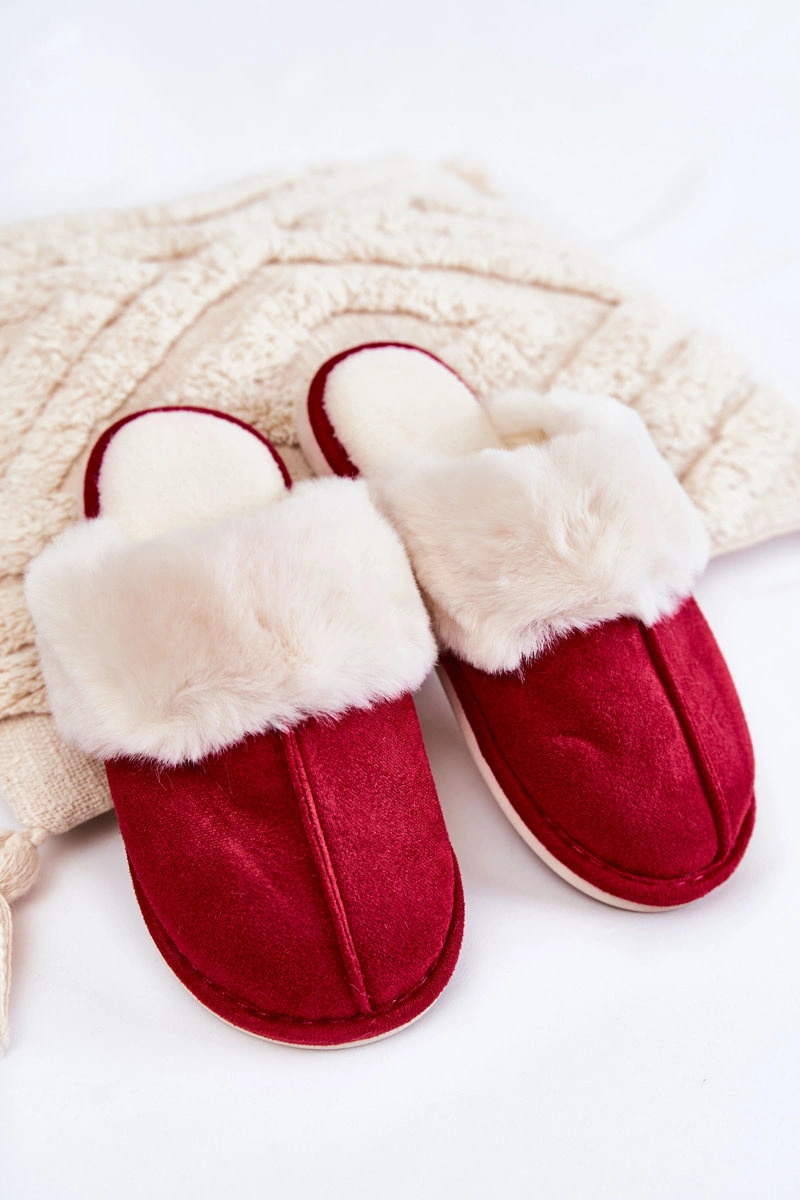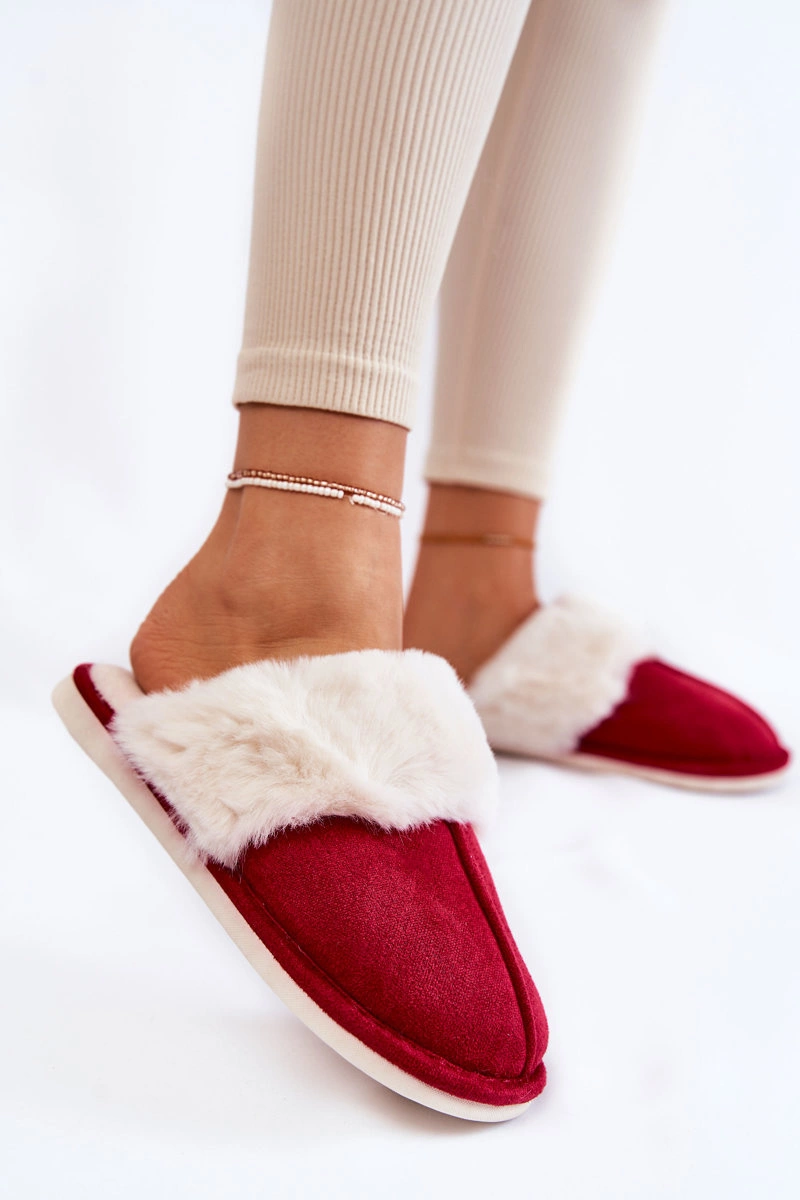 Damskie Gładkie Papcie Z Futerkiem Czerwone Morisea