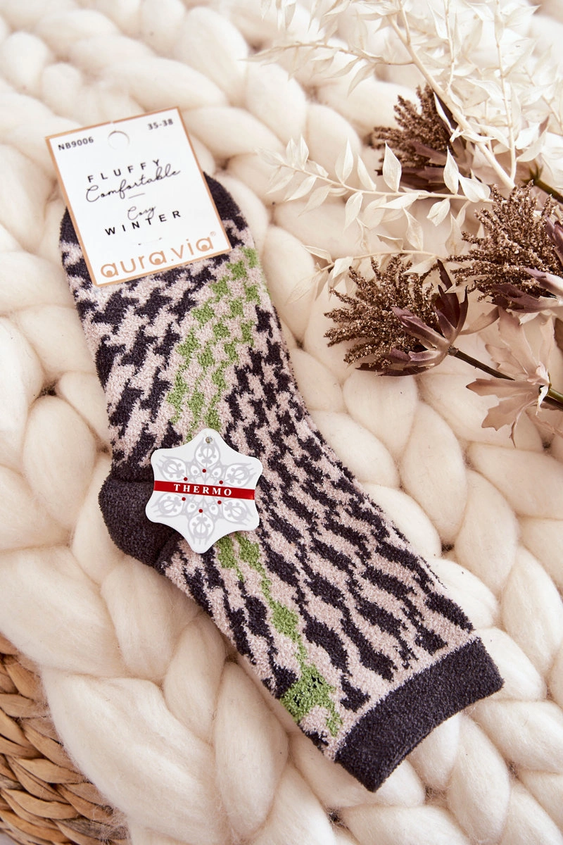 Damskie Ciepłe Skarpetki W Pionowe Wzory Szaro-Zielone
