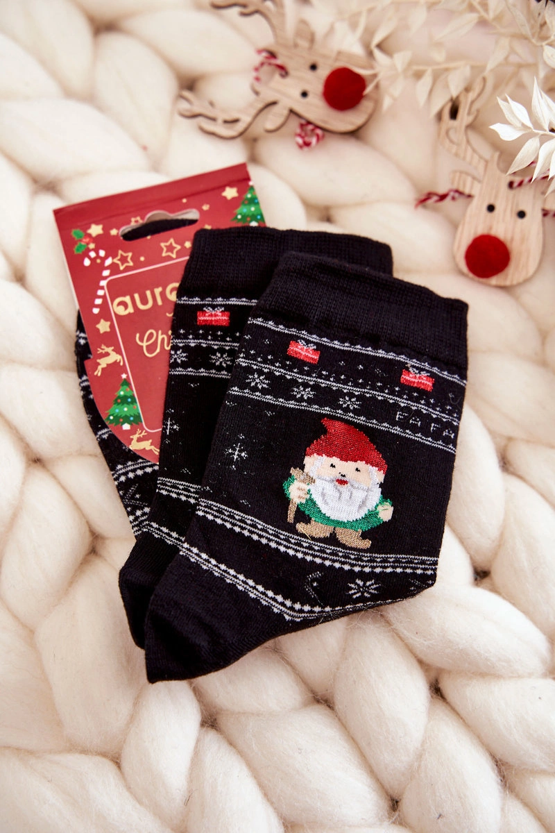 Damskie Bawełniane Świąteczne Skarpety Skrzaty Czarne