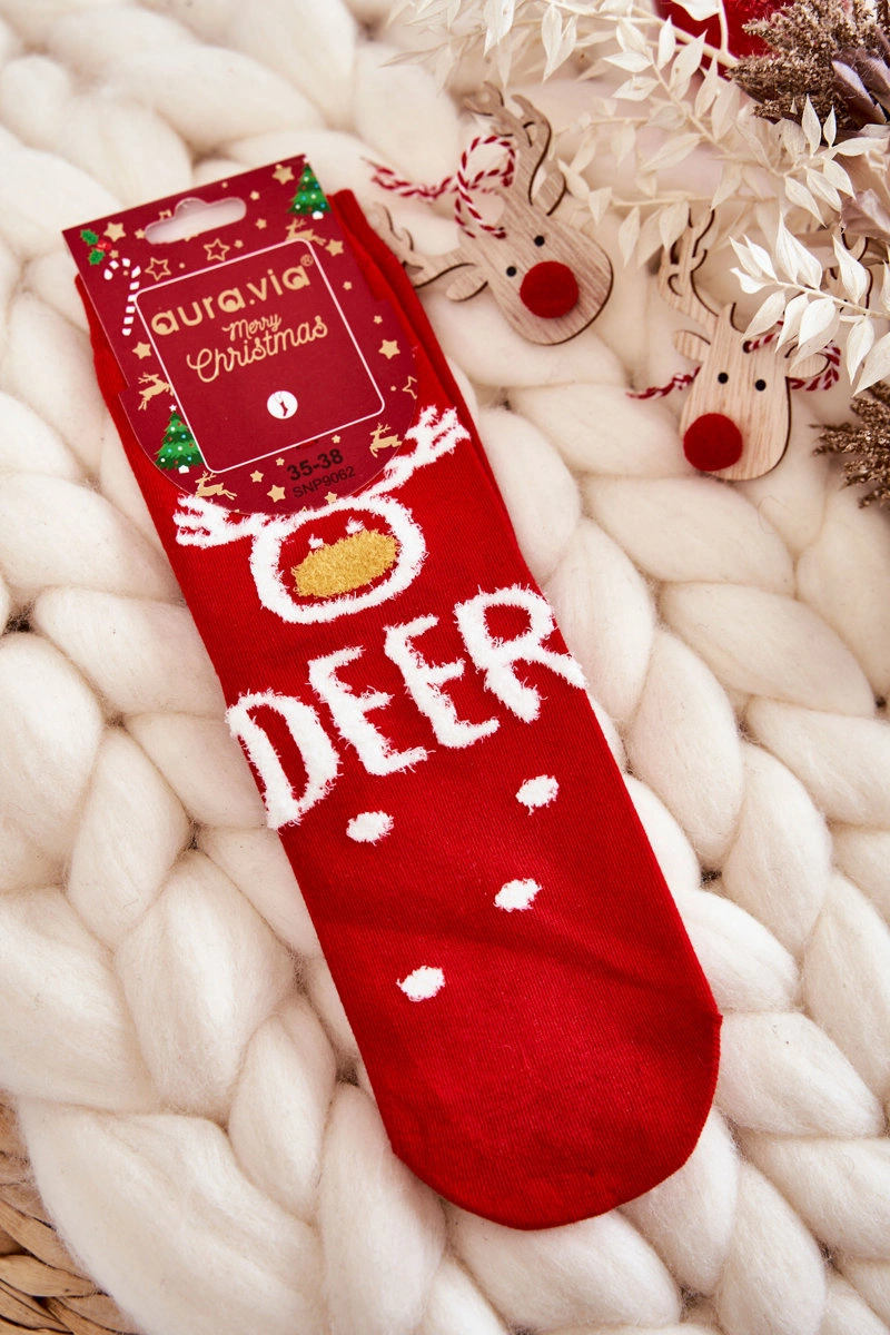 Damskie Skarpety Ze Świątecznym Wzorem W Renifera Czerwone