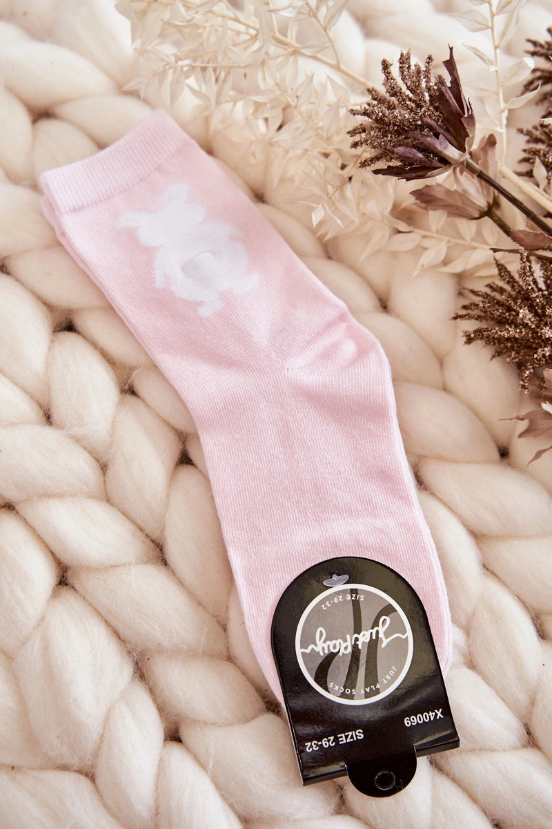 Młodzieżowe Bawełniane Skarpetki Biały Królik Różowe