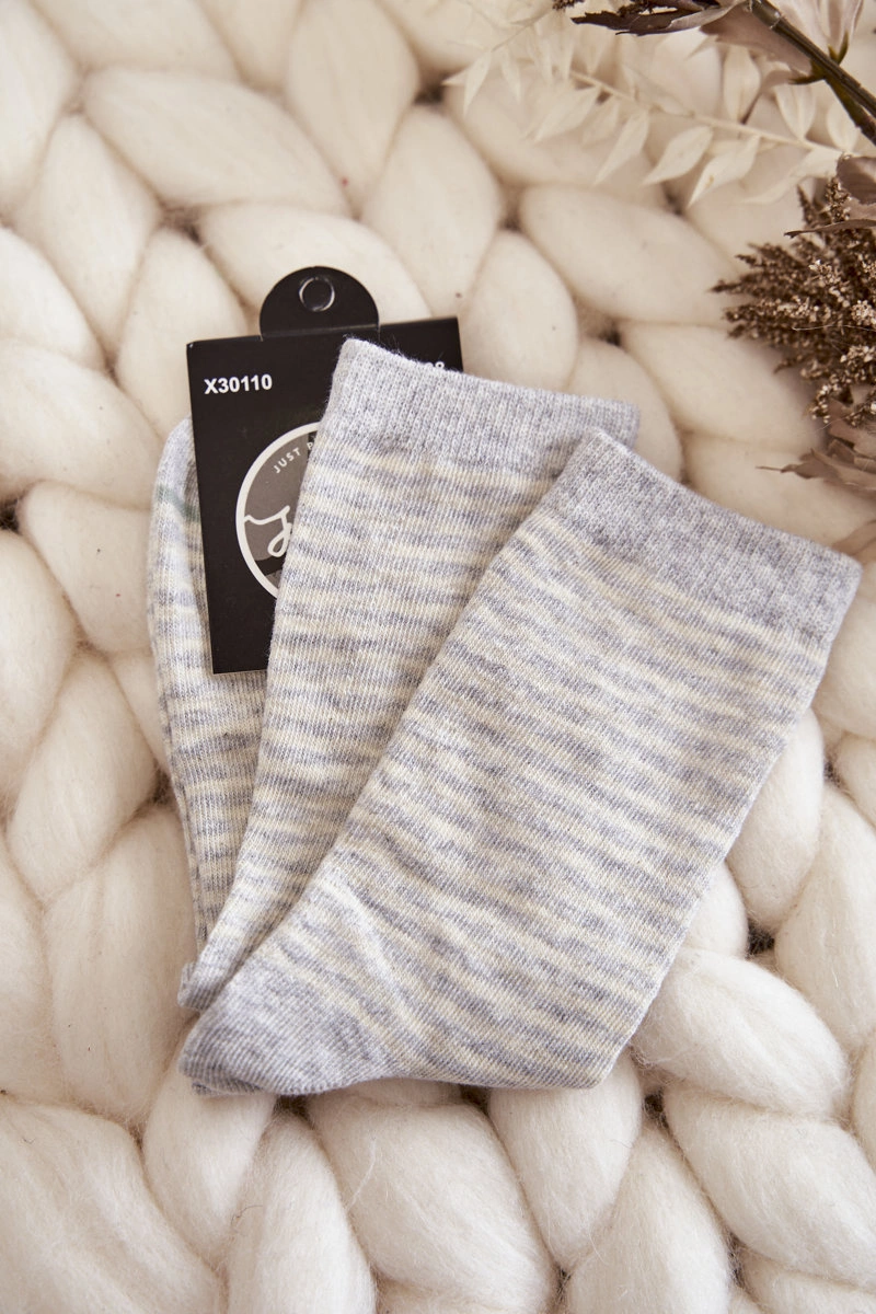 Damskie Bawełniane Klasyczne Skarpety W Paski Beżowo-Szare