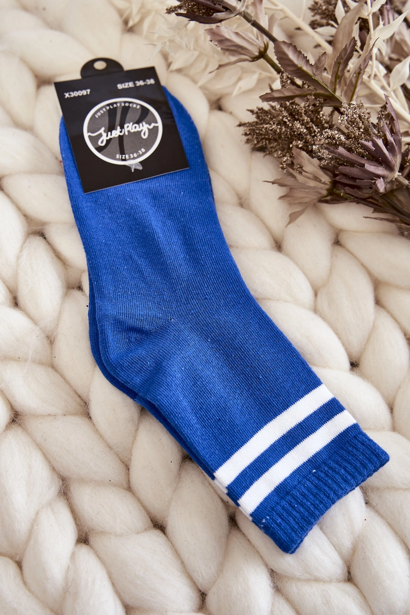 Damskie Bawełniane Skarpety Sportowe Z Paskami Niebieskie