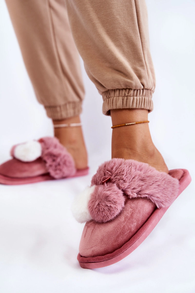 Damskie Papcie Z Pomponami I Futerkiem Różowe Sahira