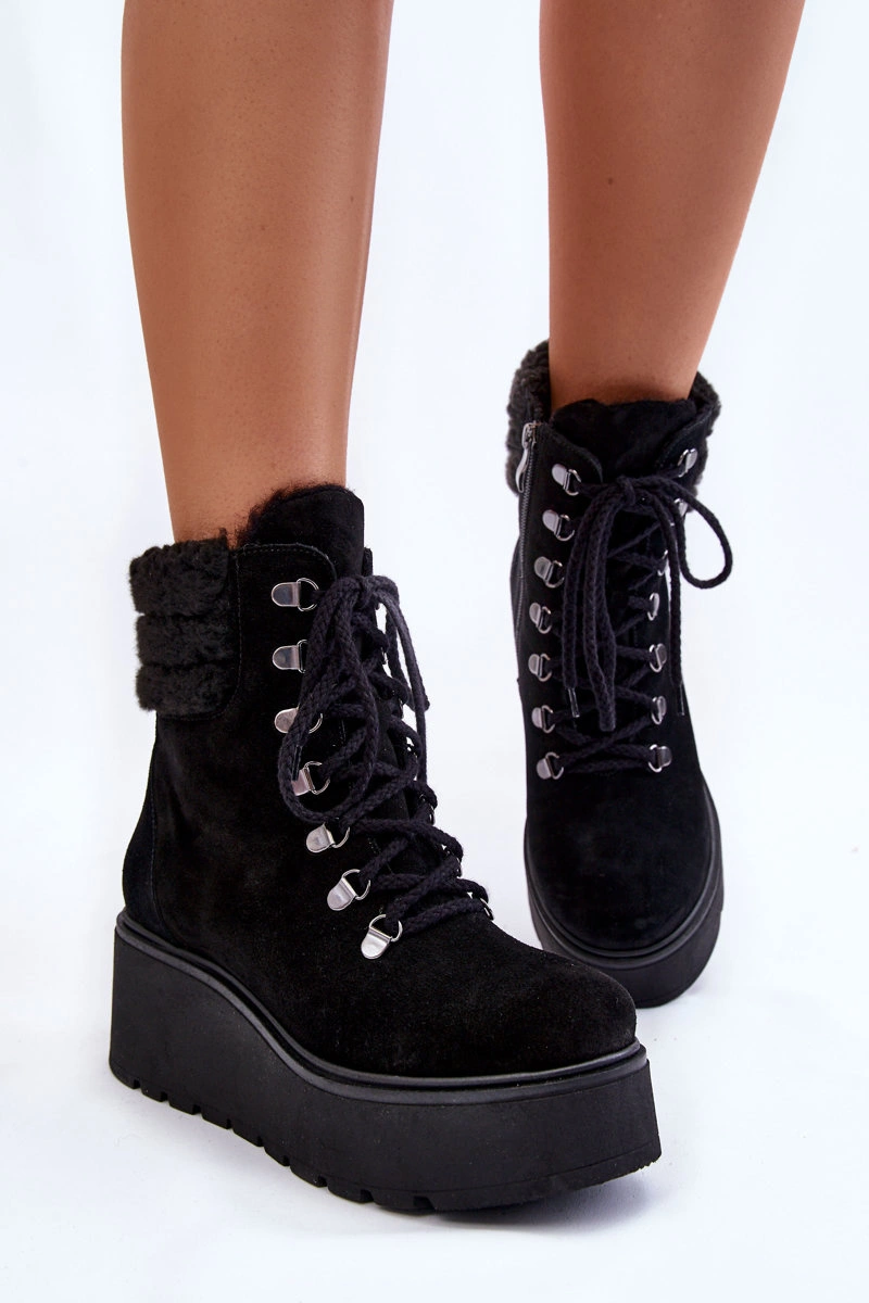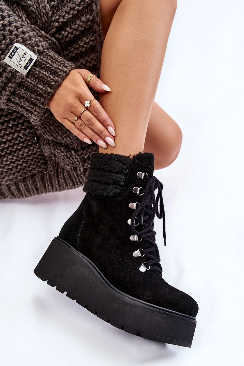 Damskie Zamszowe Botki Na Koturnie Czarne Lemar Meniko