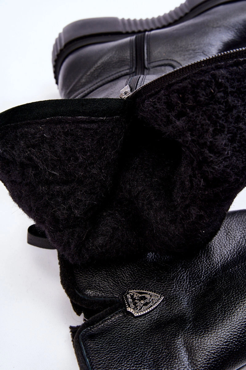 Skórzane Damskie Kozaki Z Wełną Zazoo 70121 Czarne