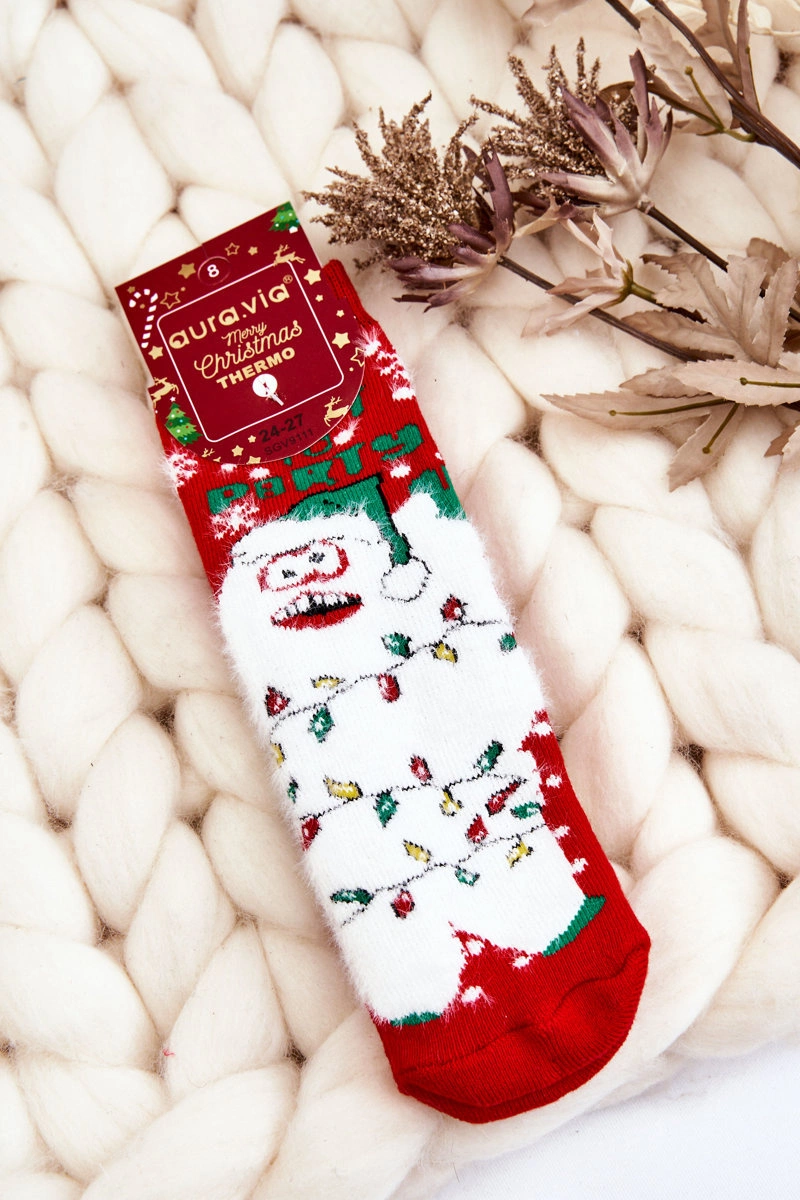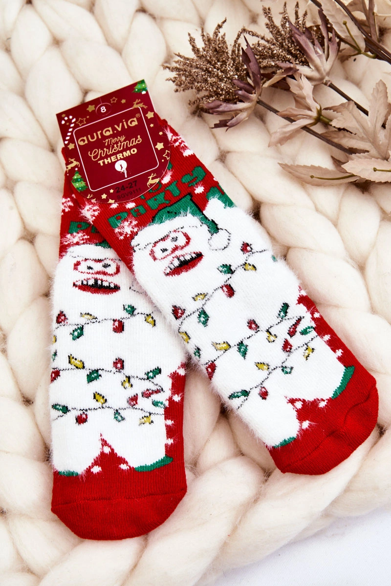 Dziecięce Świąteczne Bawełniane Skarpety Termoaktywne Yeti Czerwone