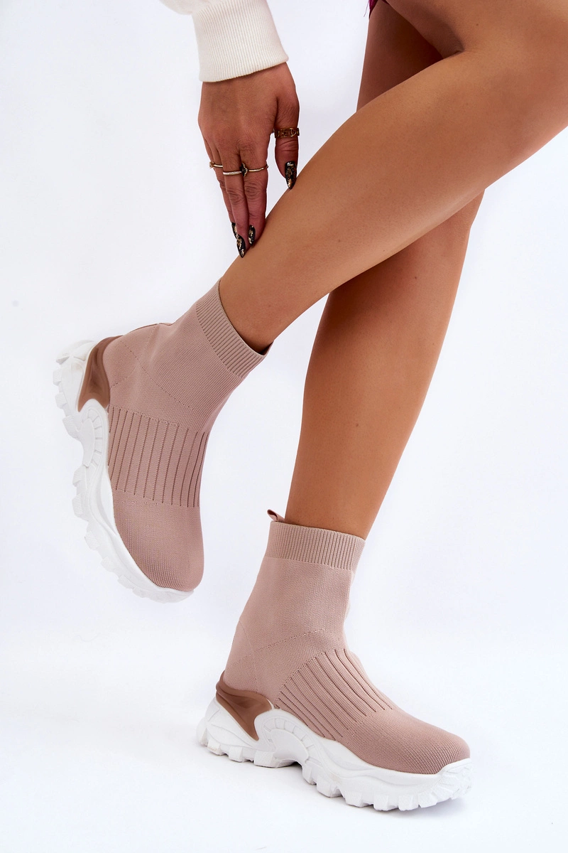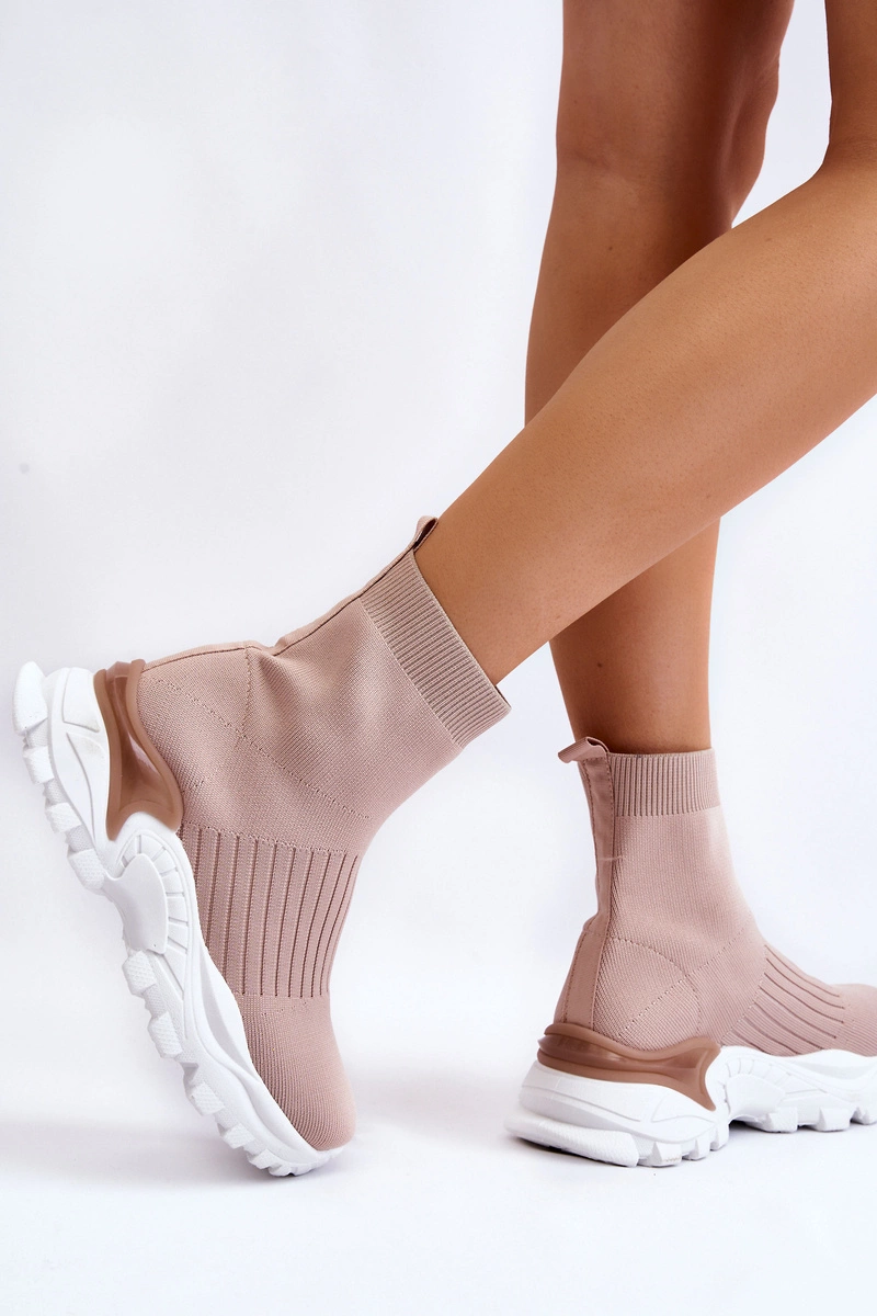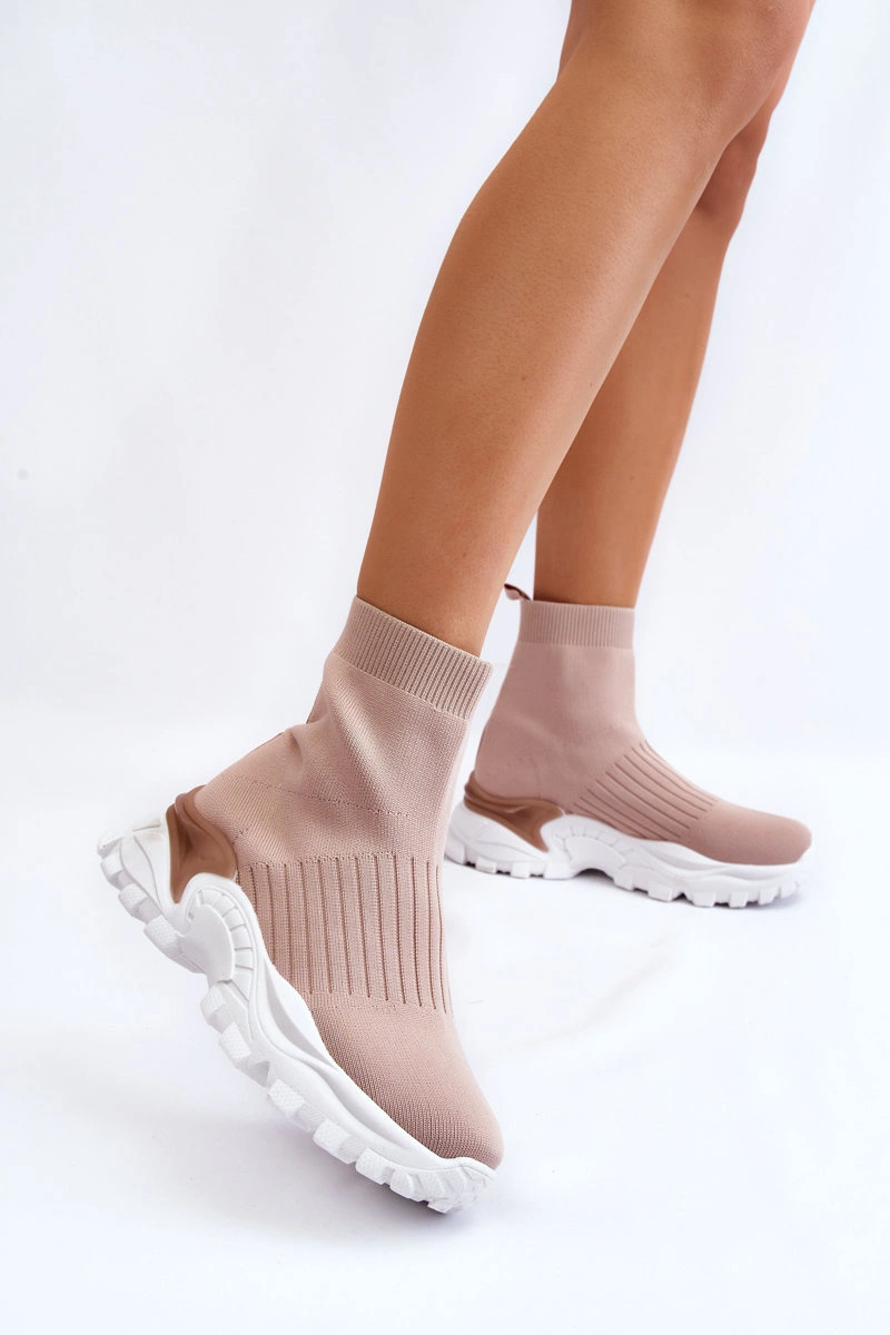 Damskie Wysokie Skarpetkowe Buty Sportowe Beżowe Jovie