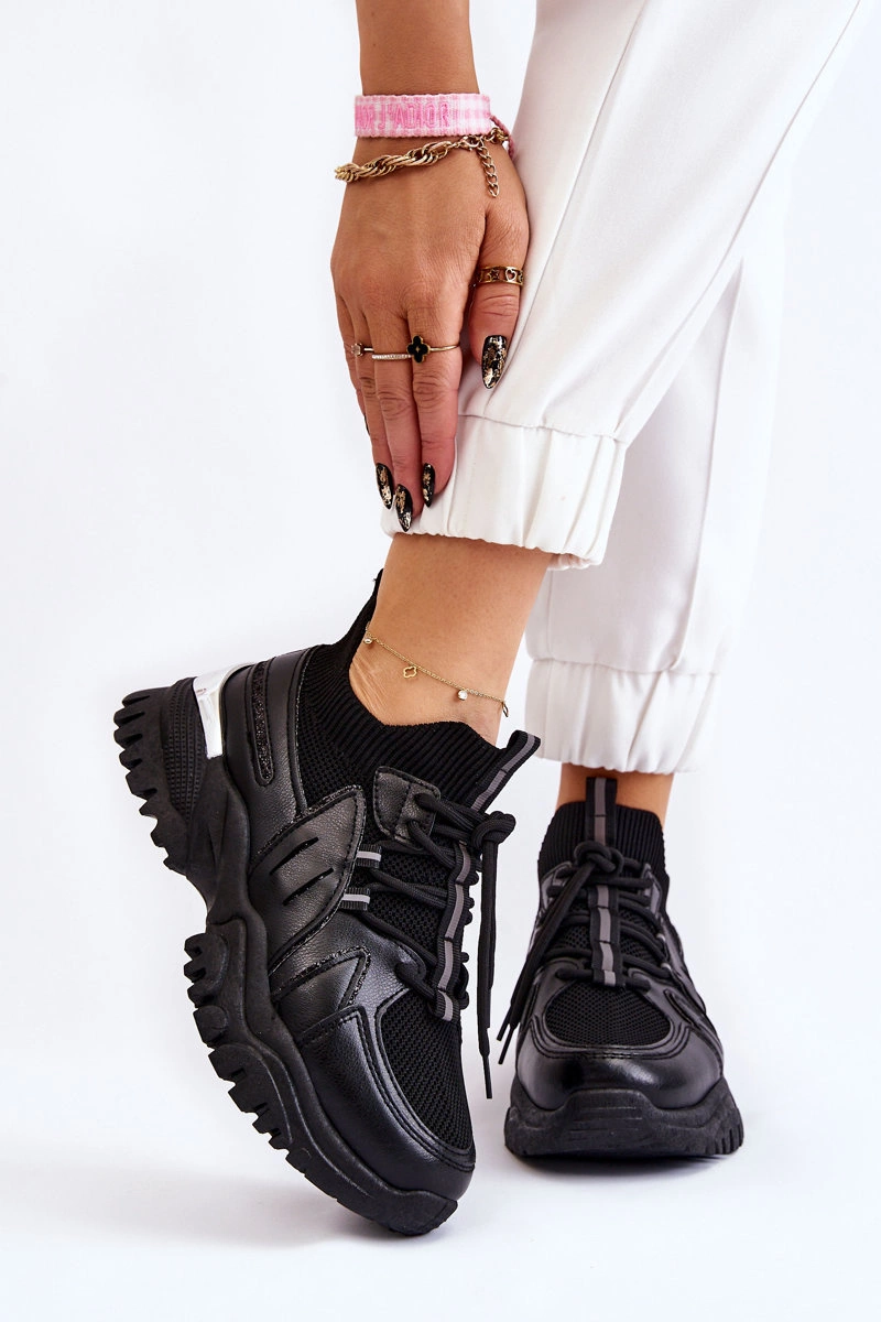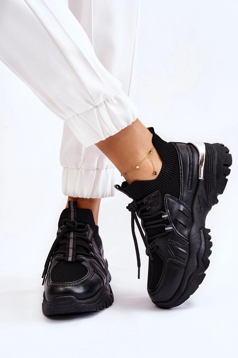 Damskie Buty Sportowe Skarpetkowe Wsuwane Czarne Berna