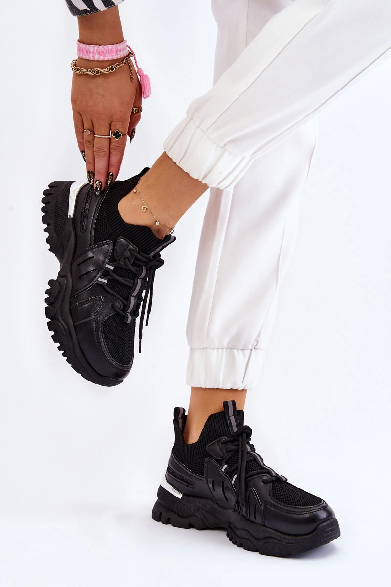 Buty sportowe zostały wykonane z połączenia eko skóry oraz materiału tekstylnego. Model wsuwany z dodatkowym sznurowaniem. Buty zostały osadzone na masywnej platformie z płaskim obcasem i żłobieniami. Miękka wkładka zapewni komfortowe użytkowanie obuwia. Koniecznie powinnaś je mieć! Przy wyborze rozmiaru prosimy sugerować się tabelą rozmiarów.
