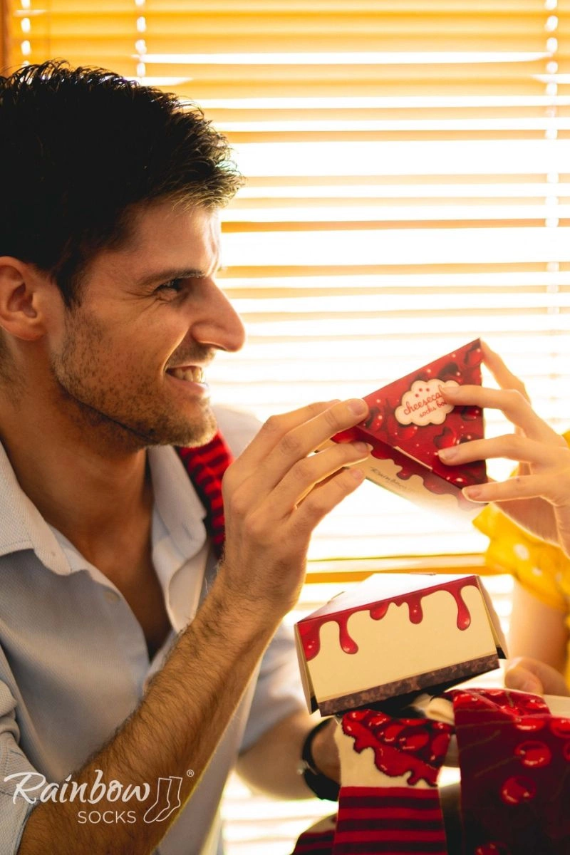 To prawdziwa gratka dla łasuchów niezależnie od płci. Kruchy spód, do tego puszysta warstwa serowej przyjemności, a na wierzchu – owocowa, rubinowa polewa. Jedna para dwóch różnych skarpetek, która przypomni Ci najsłodsze deserki. Elegancko zapakowana w pudełko do złudzenia przypominające nowojorski sernik z wisienkami. Nawet jeśli jesteś na diecie i czas słodyczy za Tobą, nie oprzesz się im w tym wydaniu!