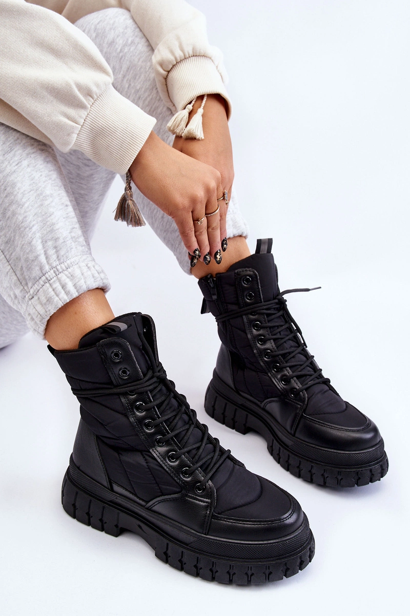 Botki Ariadna to nowość tego sezonu! Świetnie prezentują się z zimowymi stylizacjami. Cholewka jest wykonana z połączenia tkaniny oraz skóry ekologicznej. Wnętrze zostało wykończone ciepłym materiałem Przy wyborze rozmiaru prosimy sugerować się tabelą rozmiarów.