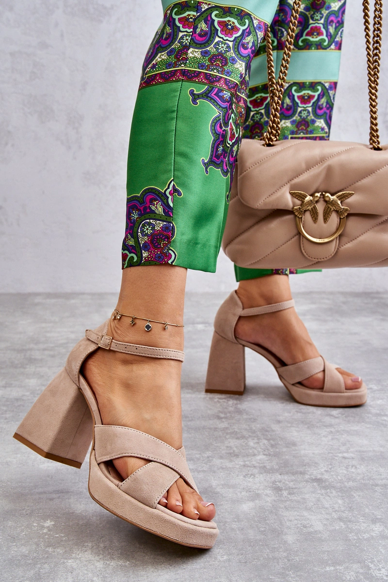 Damskie Zamszowe Sandały Na Obcasie Lewski Shoes 3221 Beżowe