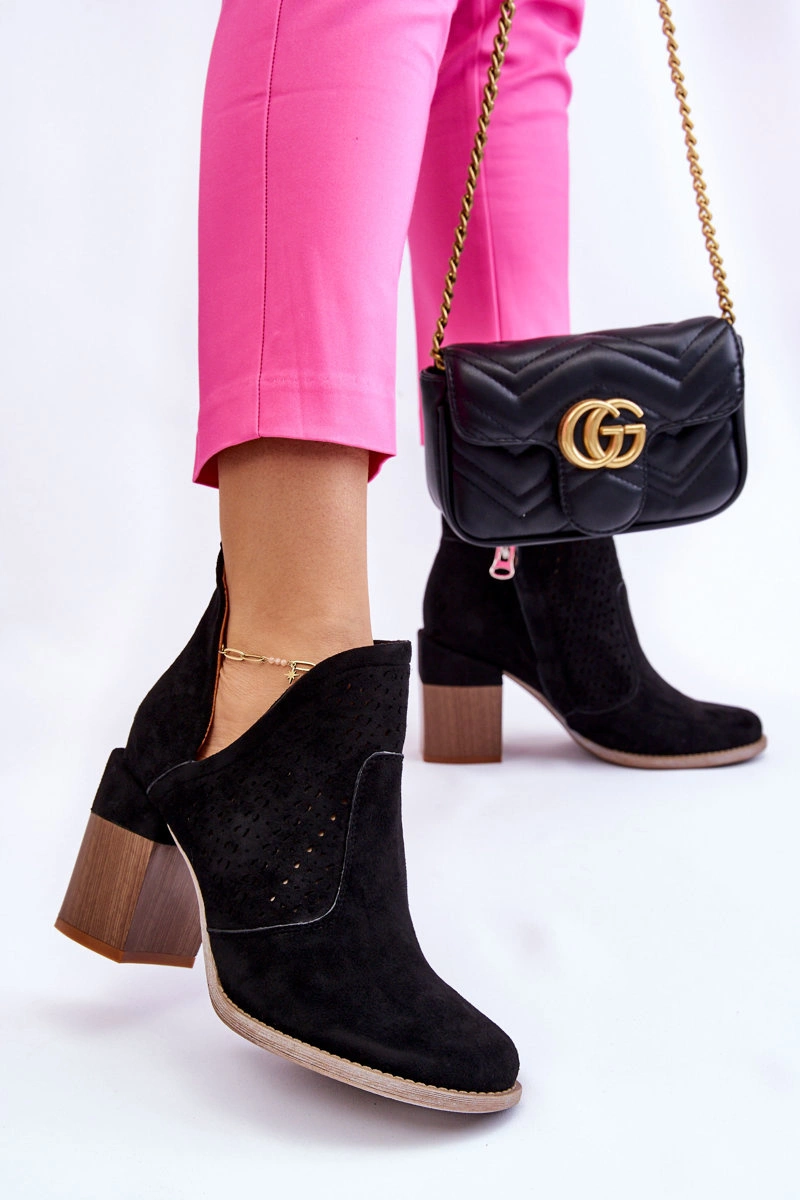 Zamszowe Botki Z Wycięciem Czarne Layne
