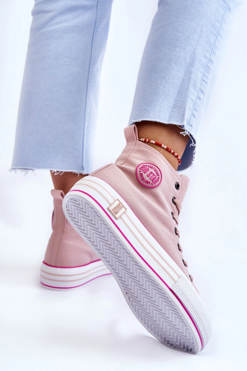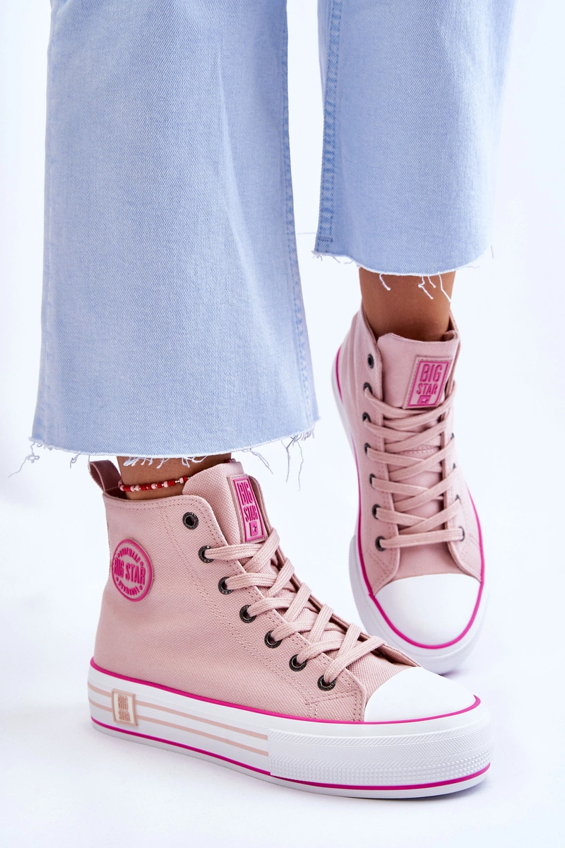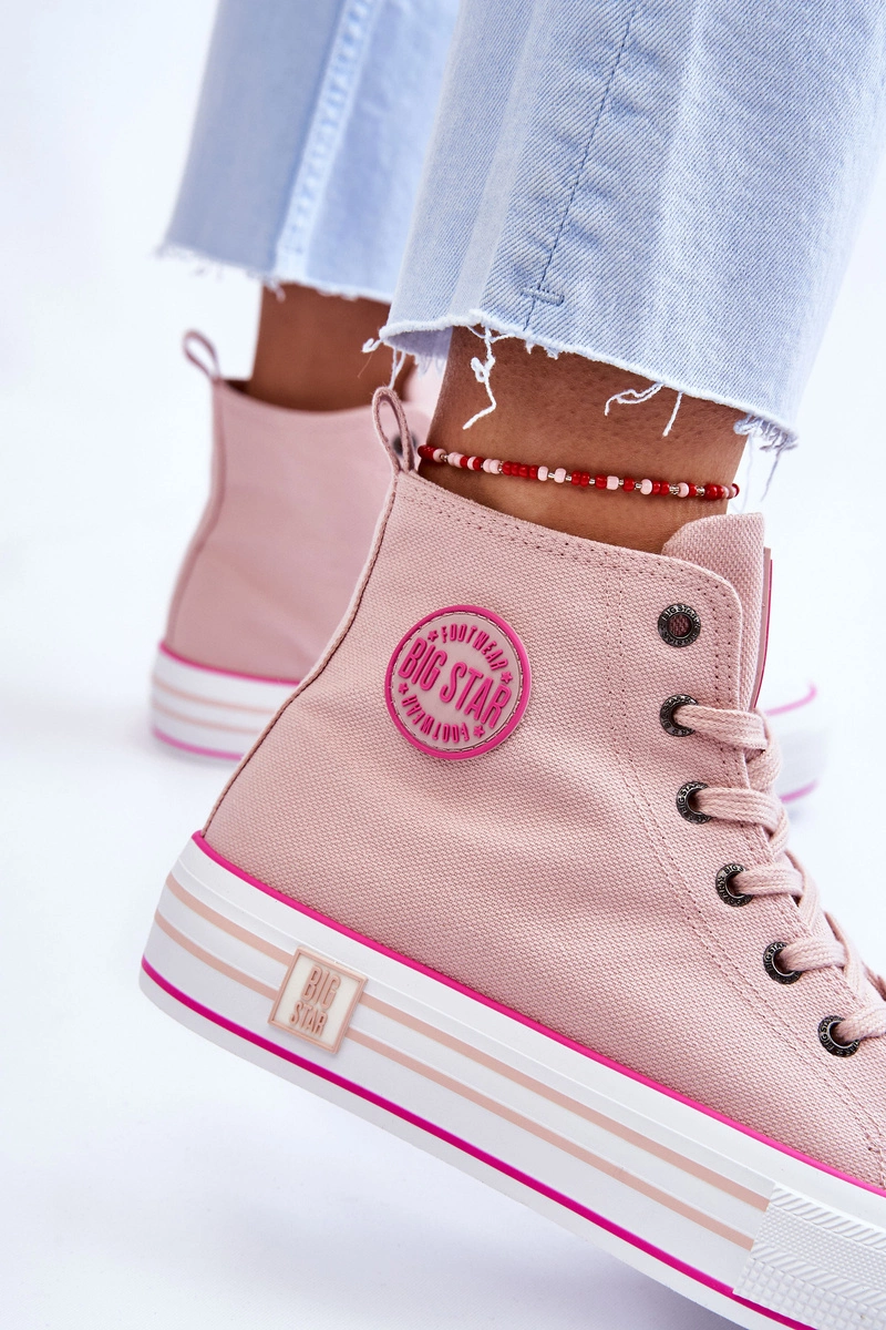 Damskie Wysokie Materiałowe Trampki Na Platformie Big Star LL274186 Różowe