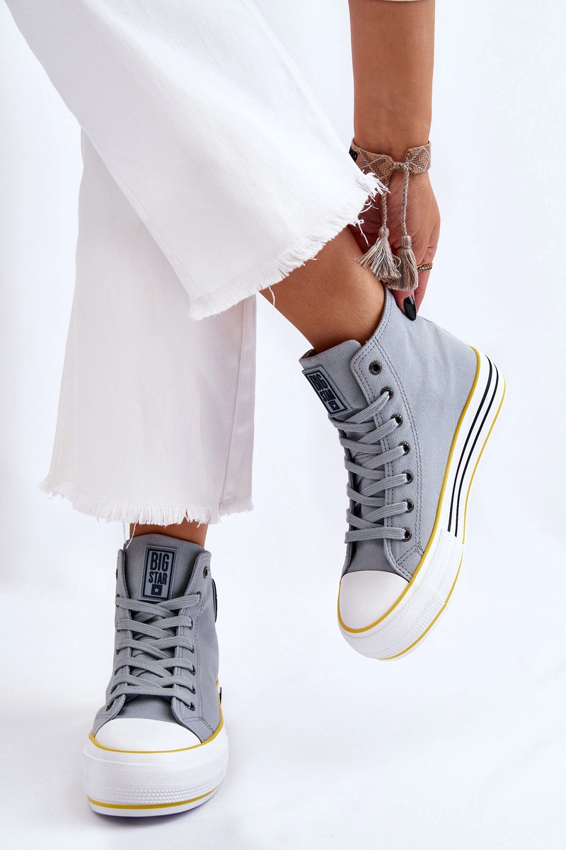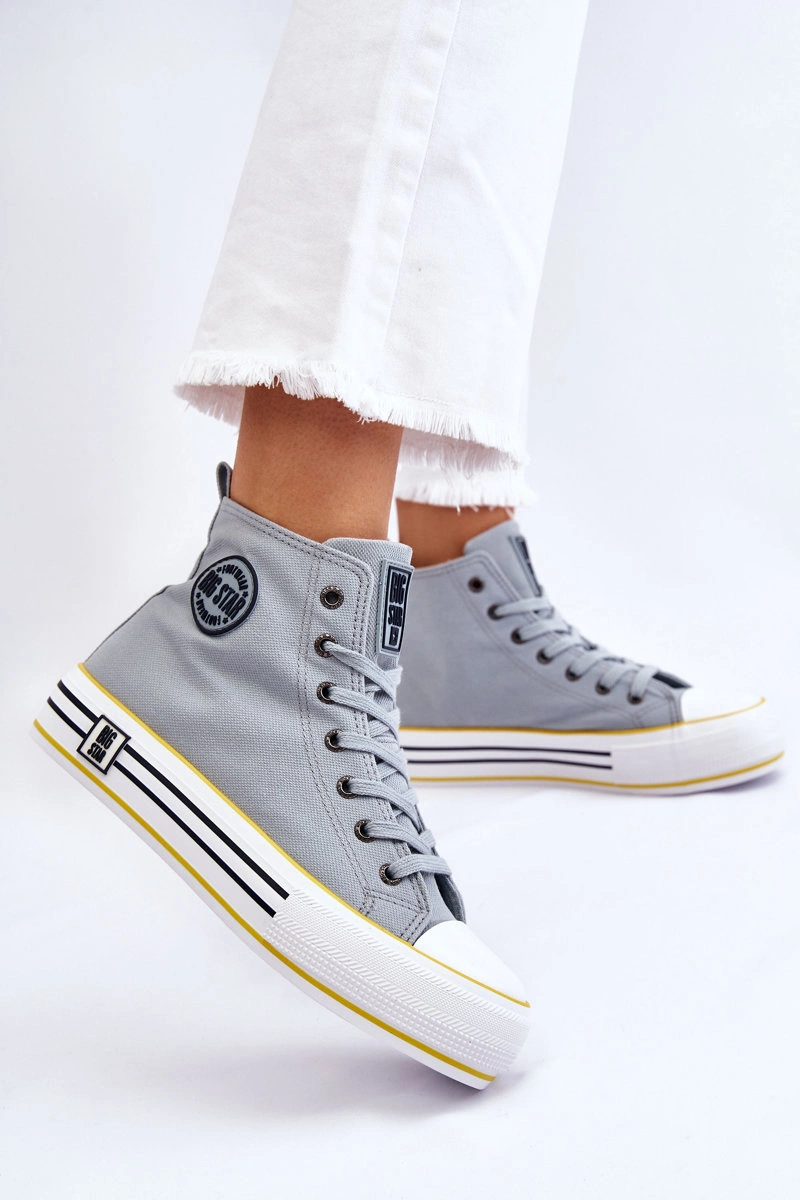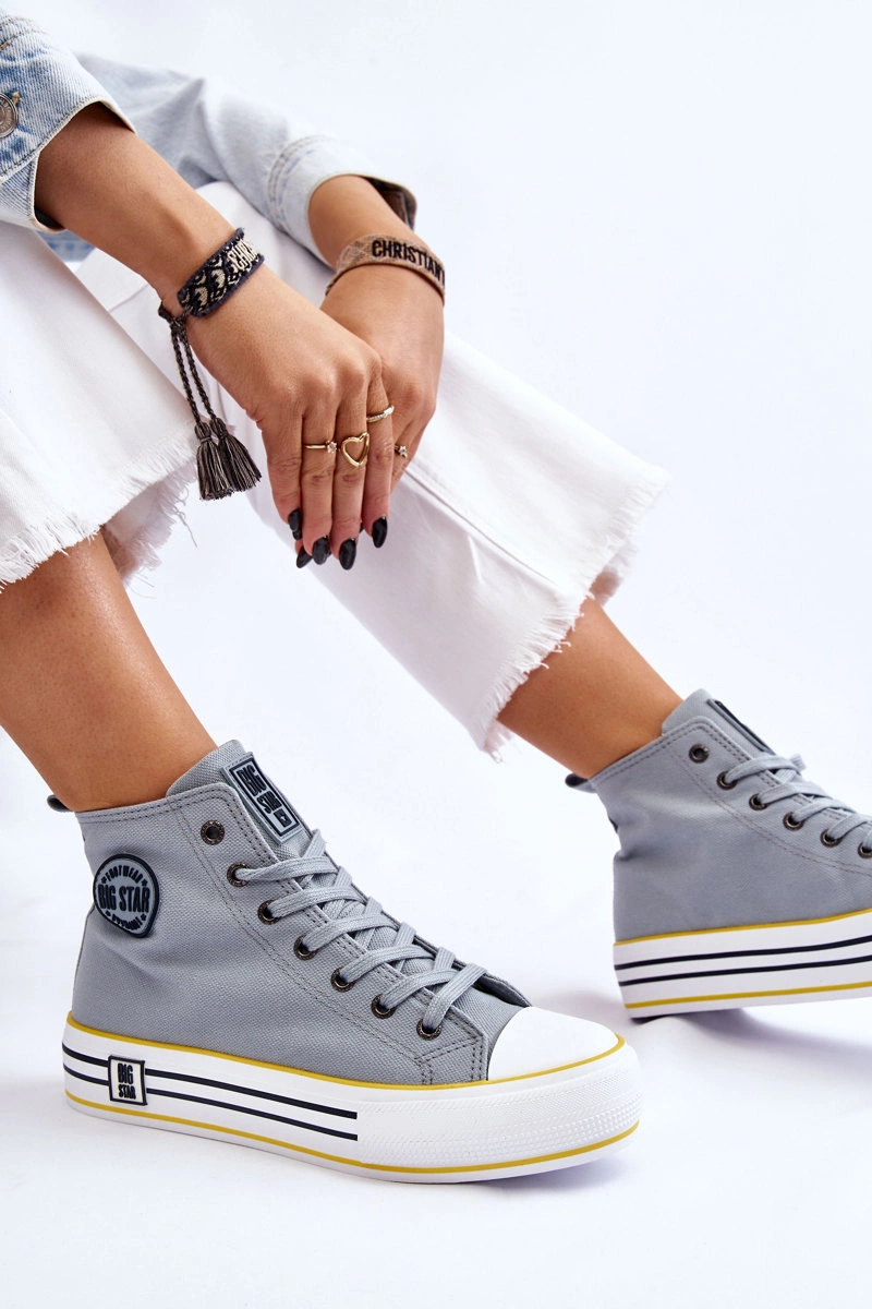 Damskie Wysokie Materiałowe Trampki Na Platformie Big Star LL274188 Jasnoniebieskie