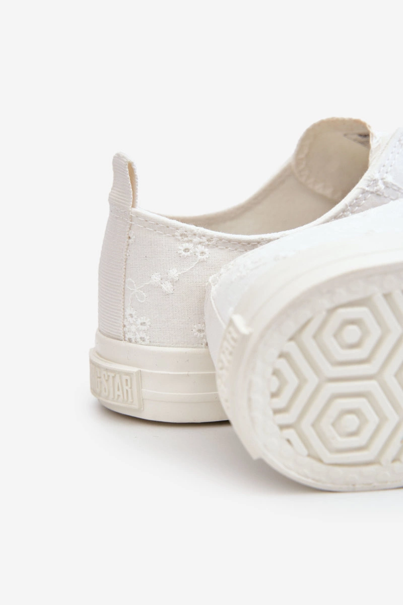 Damskie, modne trampki marki Big Star zostały wykonane z materiału tekstylnego. Na całości cholewki znajdują się ozdobne hafty. Buty te posiadają miękką, materiałową wkładkę oraz antypoślizgową podeszwę wykonaną z gumowego tworzywa. Ten model powinien znaleźć się w Twojej szafie. Koniecznie sprawdź całą naszą kolekcję butów BIG STAR.Przy wyborze rozmiaru prosimy sugerować się tabelą rozmiarów.