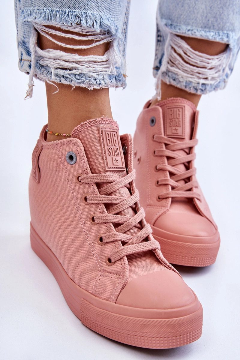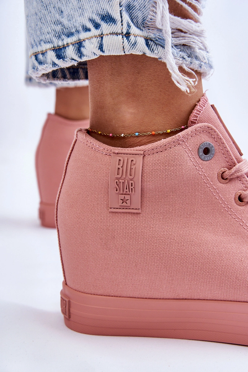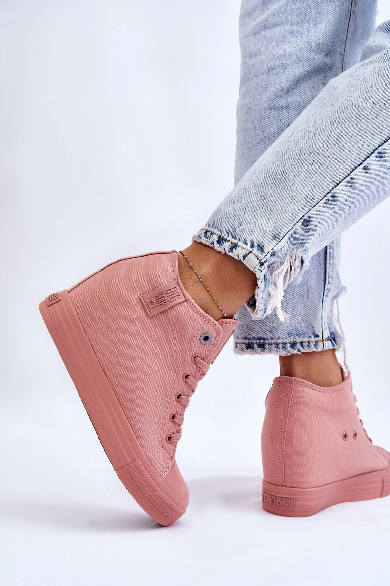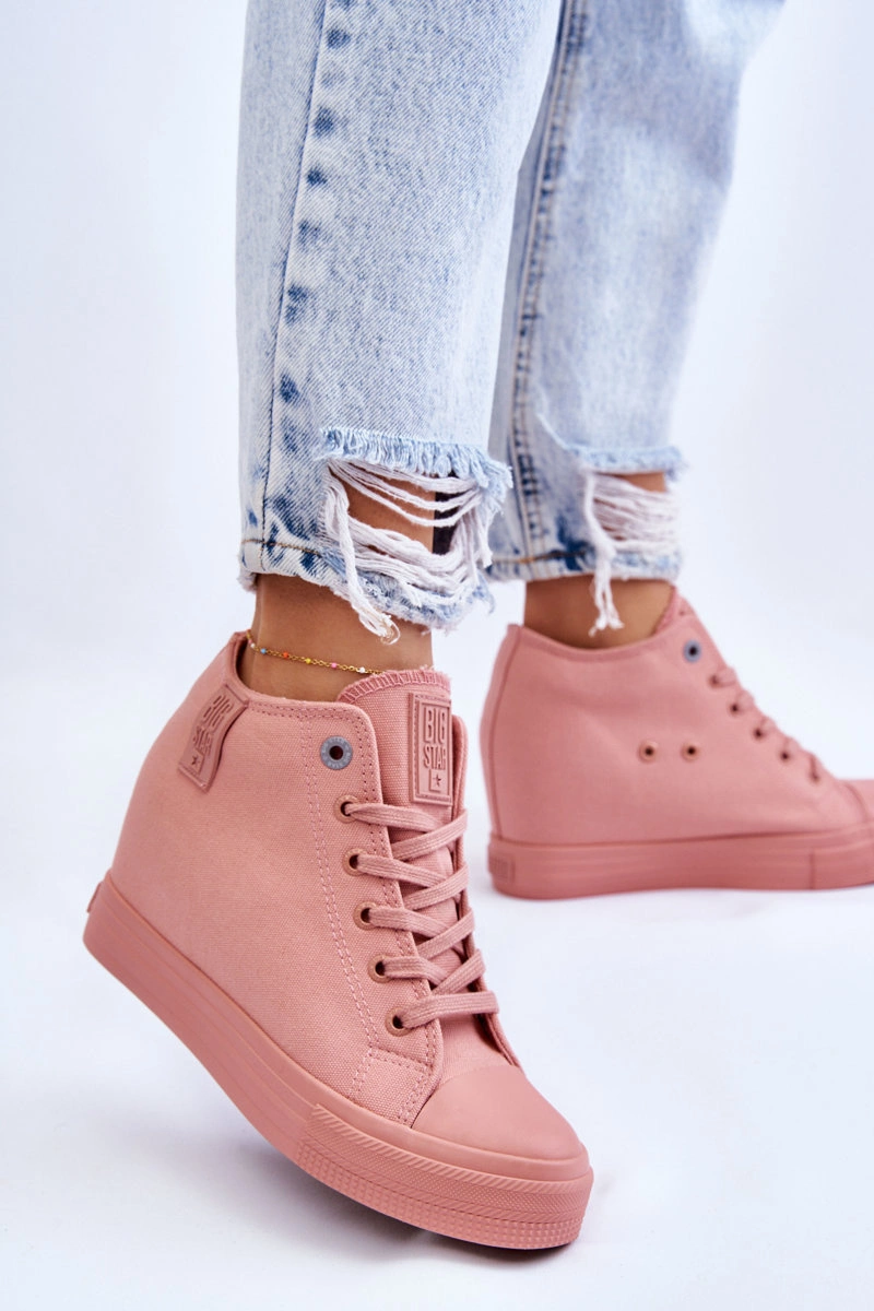 Trampki polskiej marki BIG STAR. Kultowe trampki pasują do wielu stylizacji. Buty posiadają miękką, materiałową wkładkę. Dodatkowo wewnątrz znajduje się koturn o wysokości około 4,5 cm. Antypoślizgowa, solidna podeszwa to gwarancja bezpieczeństwa. Dodatkowo trampki są osadzone na platformie. Koniecznie sprawdź całą naszą kolekcję butów BIG STAR. Przy wyborze rozmiaru prosimy sugerować się tabelą rozmiarów.
