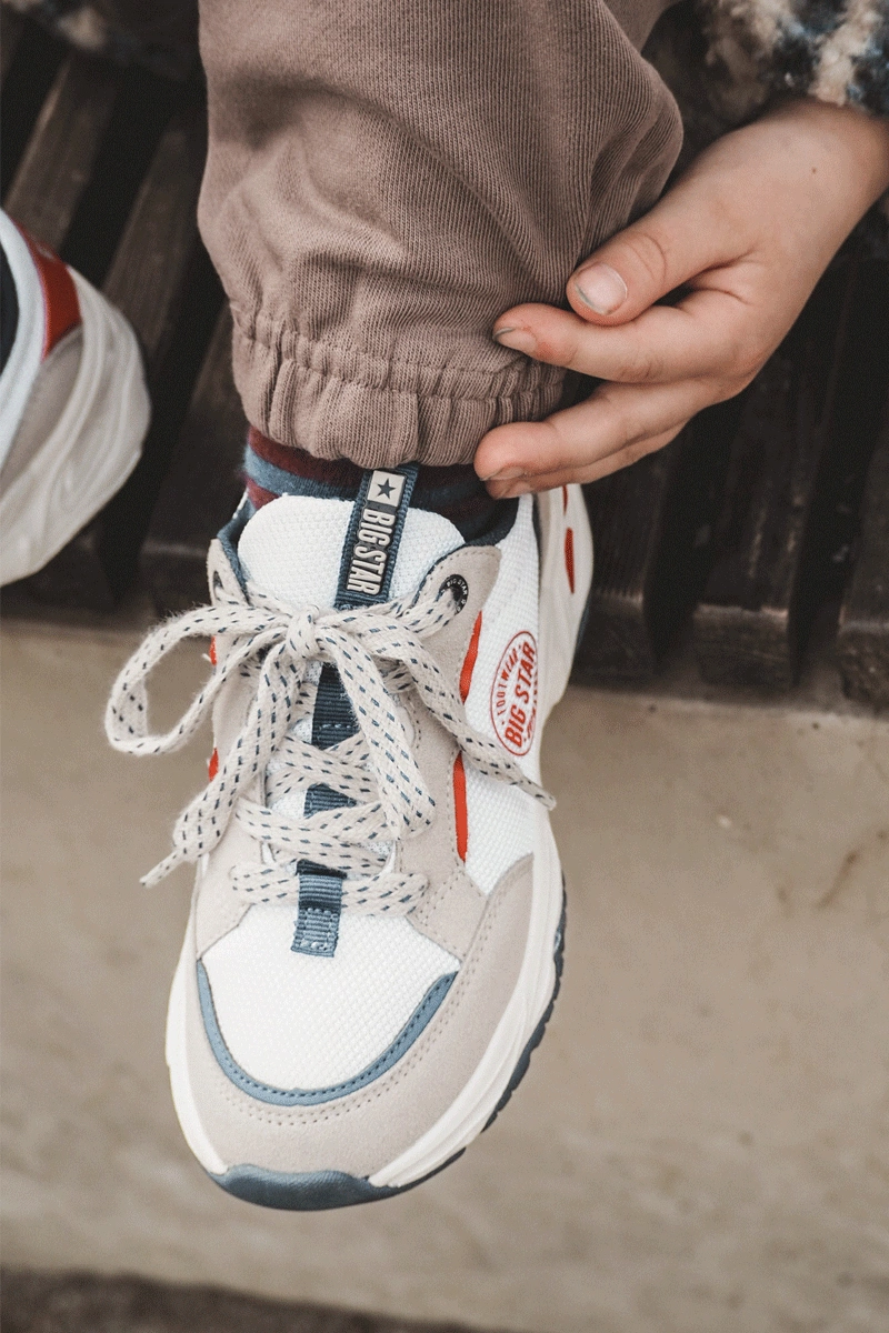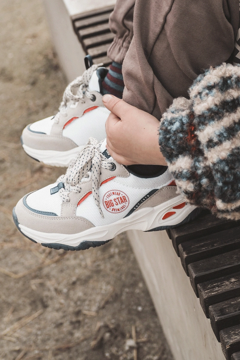 Dziecięce sportowe buty od polskiej marki BIG STAR. Zostały wykonane z wysokiej jakości materiału tekstylnego oraz eko zamszu. Wkładka Memory Foam System zapamiętuje kształt stopy, zapewni odpowiednie dopasowanie, absorbuje wstrząsy oraz jest odporna na odkształcenia. Struktura pianki pozwala na odparowanie wilgoci i regulację temperatury. Buty posiadają klasyczne sznurowanie pozwalające na odpowiednie dopasowanie do tęgości nogi. Osadzone na płaskim obcasie oraz platformie. Przy wyborze rozmiaru prosimy sugerować się tabelą rozmiarów.