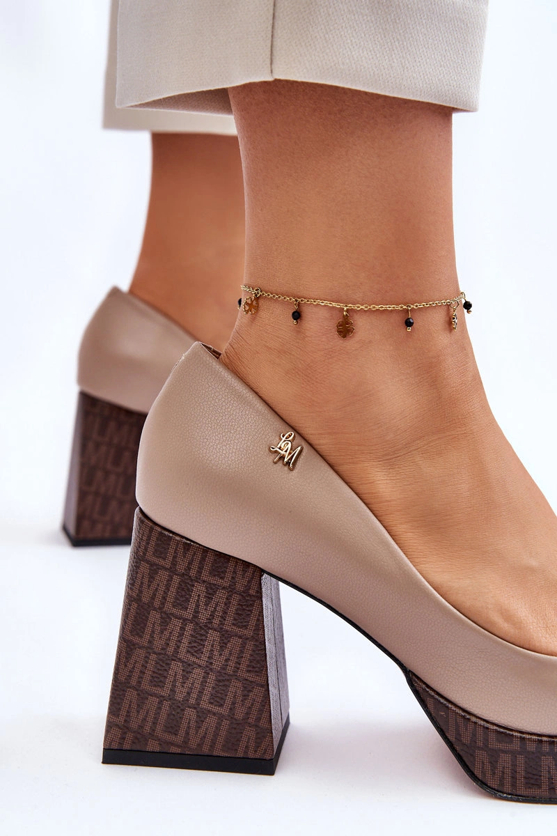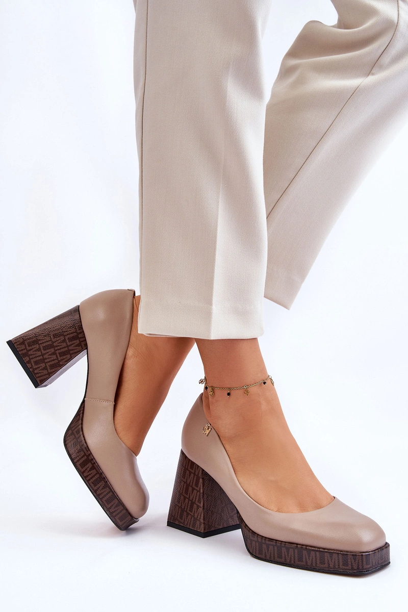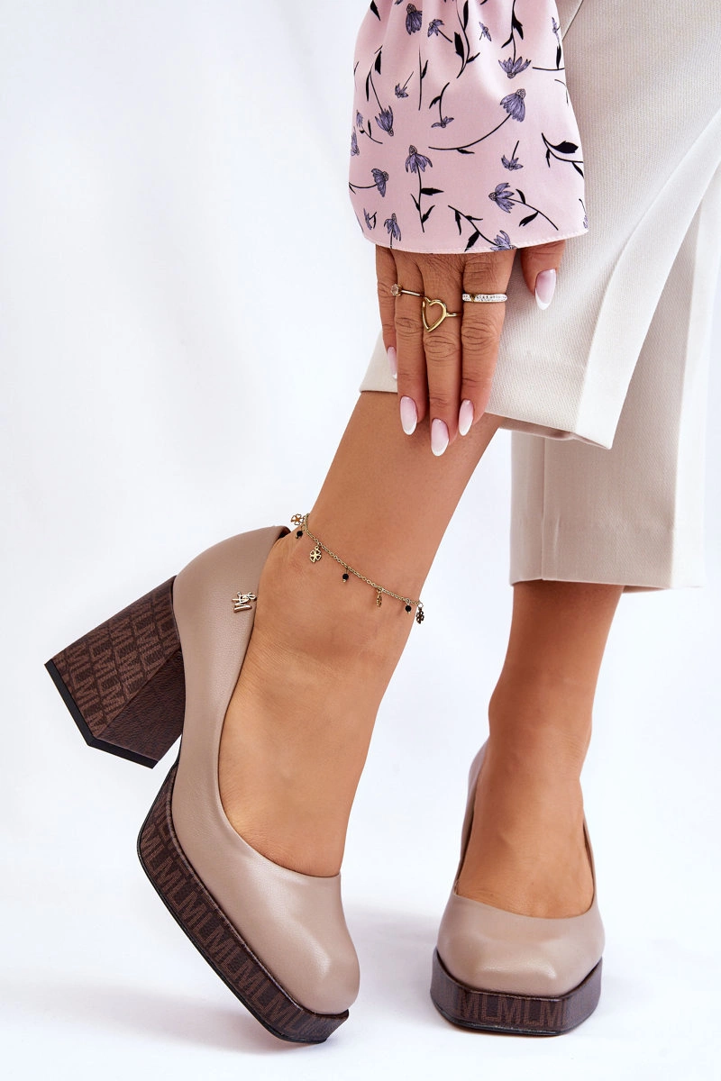 Modne Skórzane Czółenka Laura Messi 2599 Beżowe