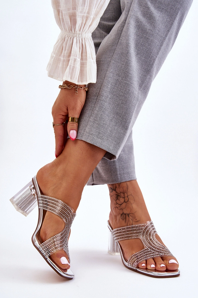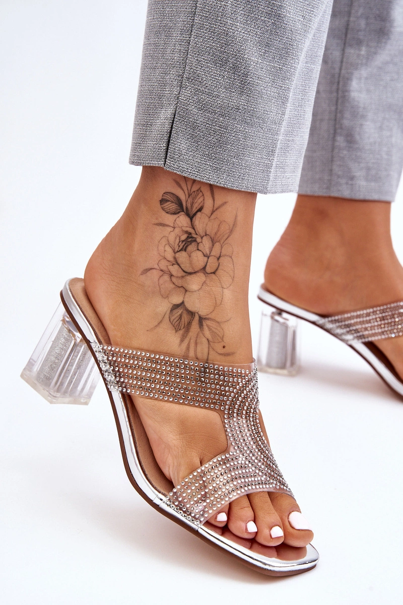 Klapki Na Obcasie Z Dżetami Srebrne Jaxen